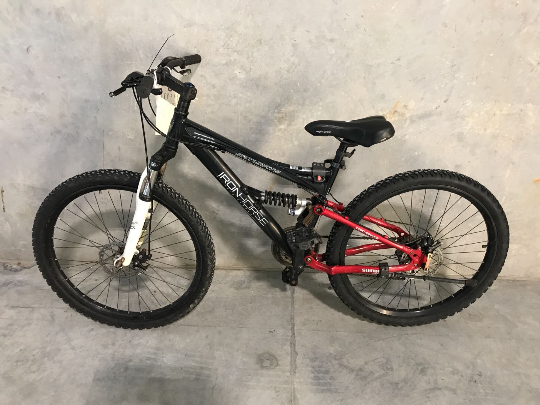 BLACK IRONHORSE 21 SPEED, 15" FRAME DISC BAKE, FULL SUSPENSION MOUNTAIN BIKE - NO REAR BRAKES