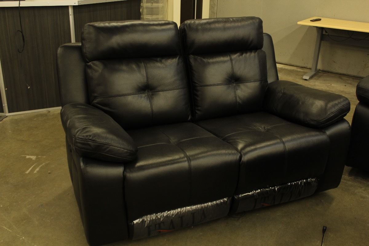 BLACK ITALIA 3 PIECE (SOFA, LOVESEAT, CHAIR) LEATHER SOFA SET, WITH 5 ELECTRIC RECLINING SEATS