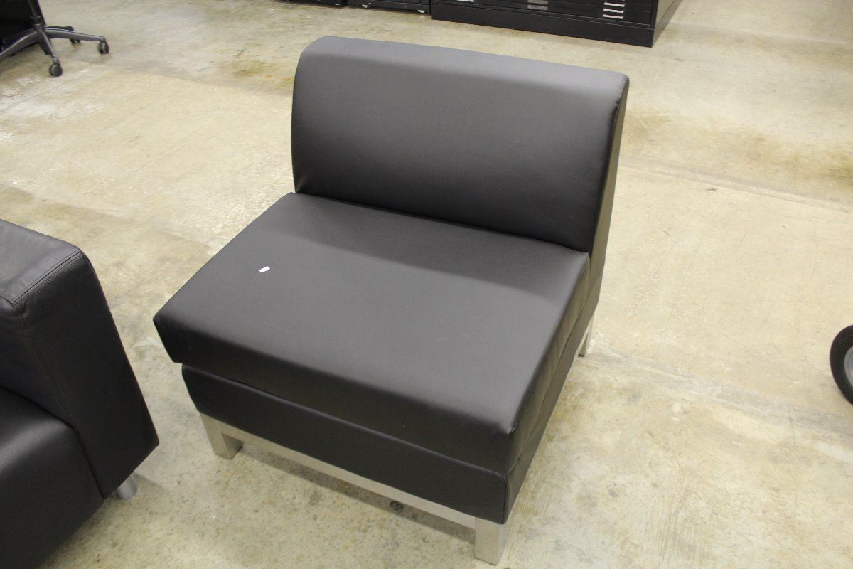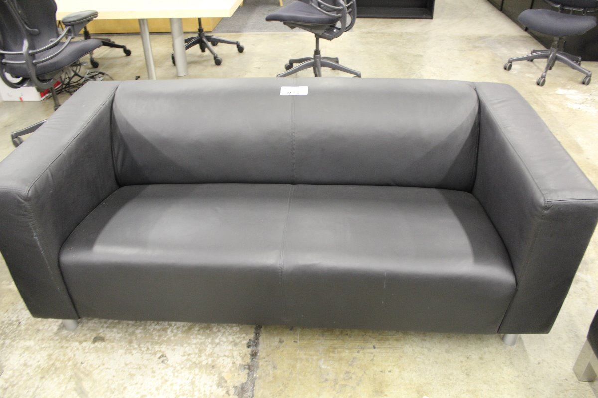 BLACK LEATHER 2 SEAT SOFA AND 2 MATCHING LEATHER RECEPTION CHAIRS