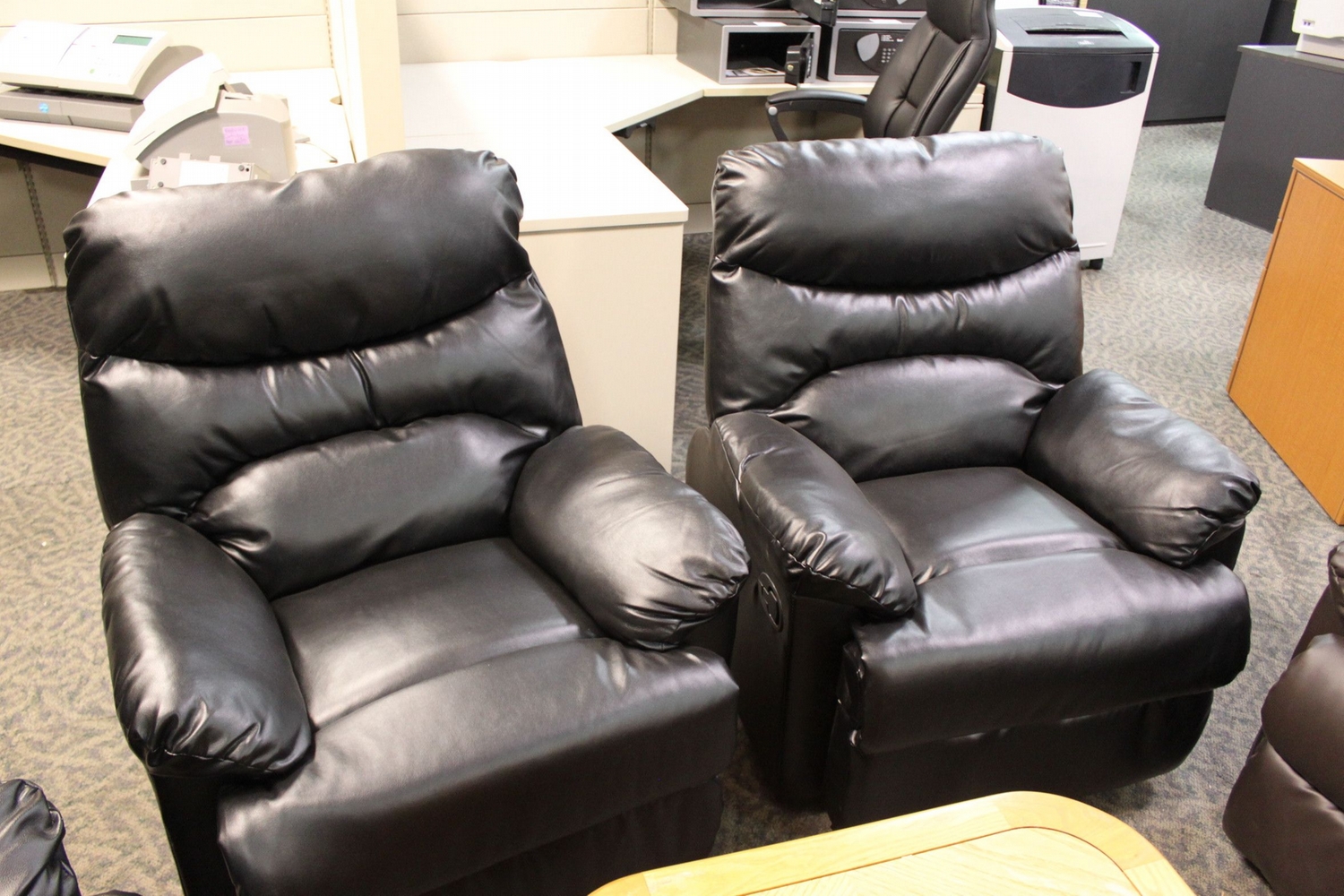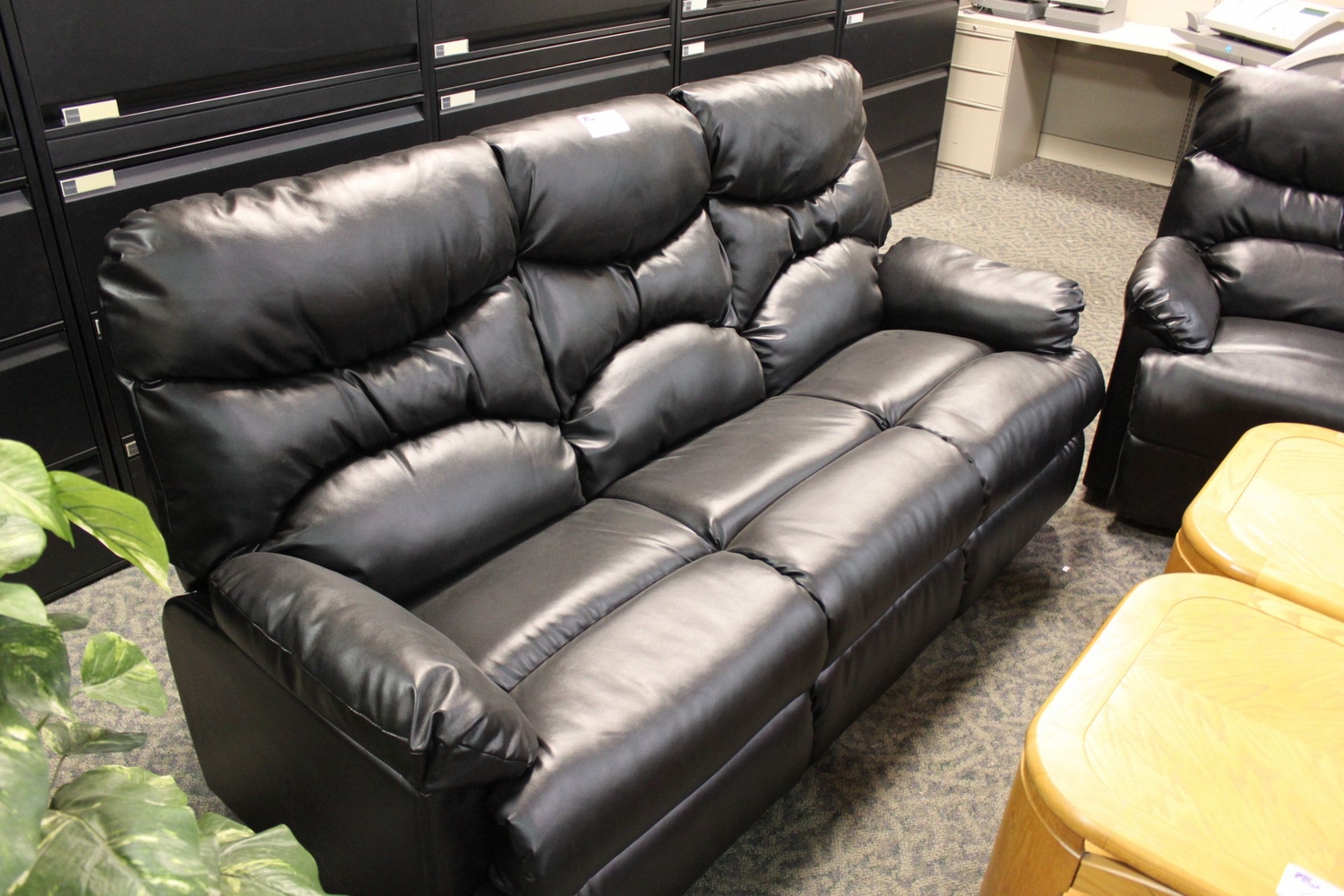 BLACK LEATHER 3 PIECE SOFA SET INCL SOFA & 2 RECLINING CHAIRS