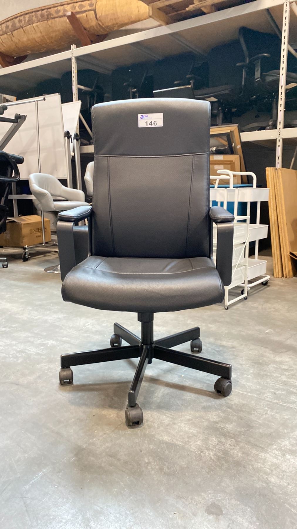BLACK LEATHER ADJUSTABLE MOBILE OFFICE CHAIR (STYLE 3)