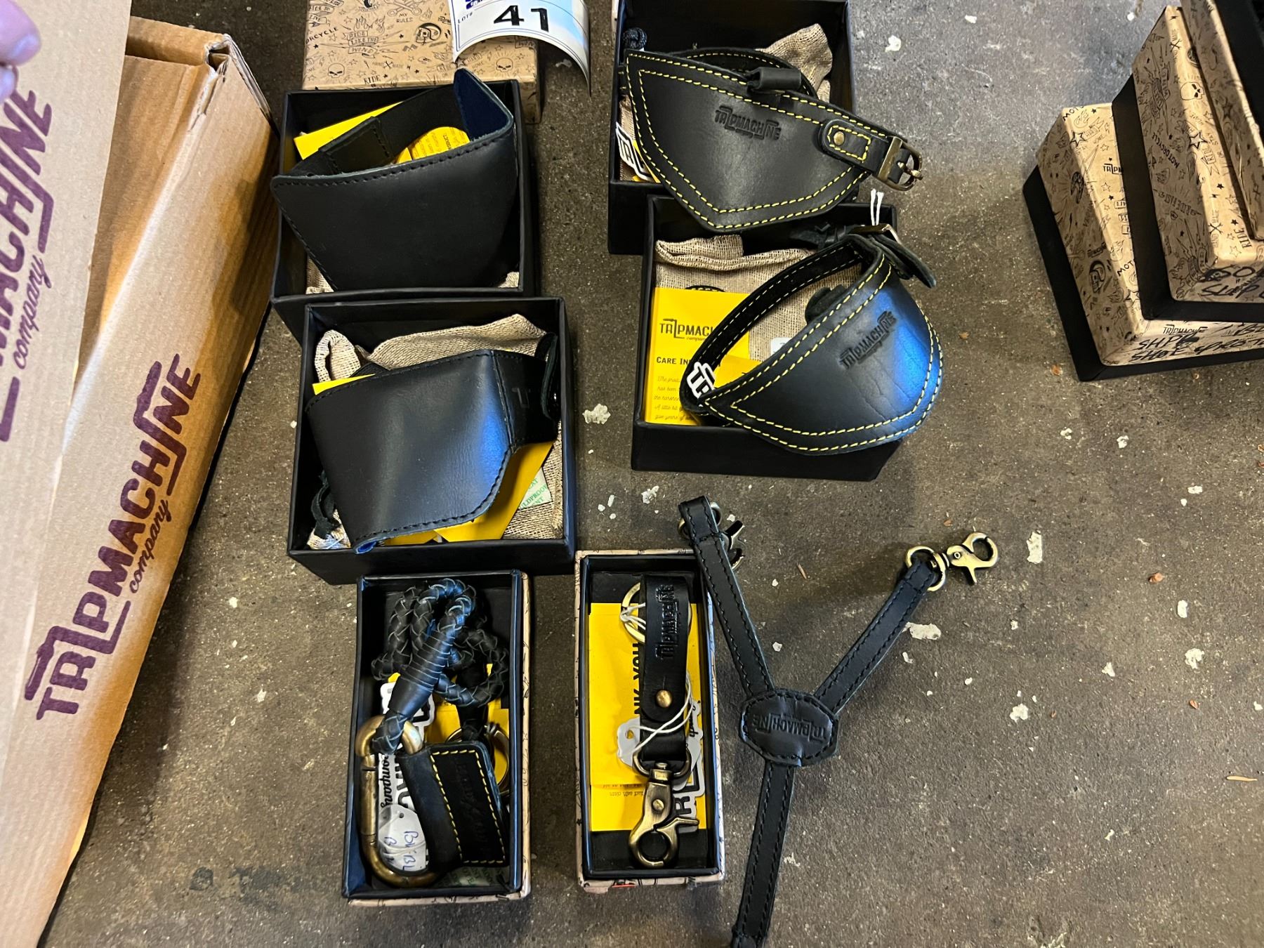 BLACK LEATHER ATTACHMENTS FOR BACKPACK & MINI PANNIER, BLACK LEATHER BRAIDED KEY CHAIN, BLACK LEATHER KEY FOB & 4 BLACK LEATHER SHOE PROTECTORS