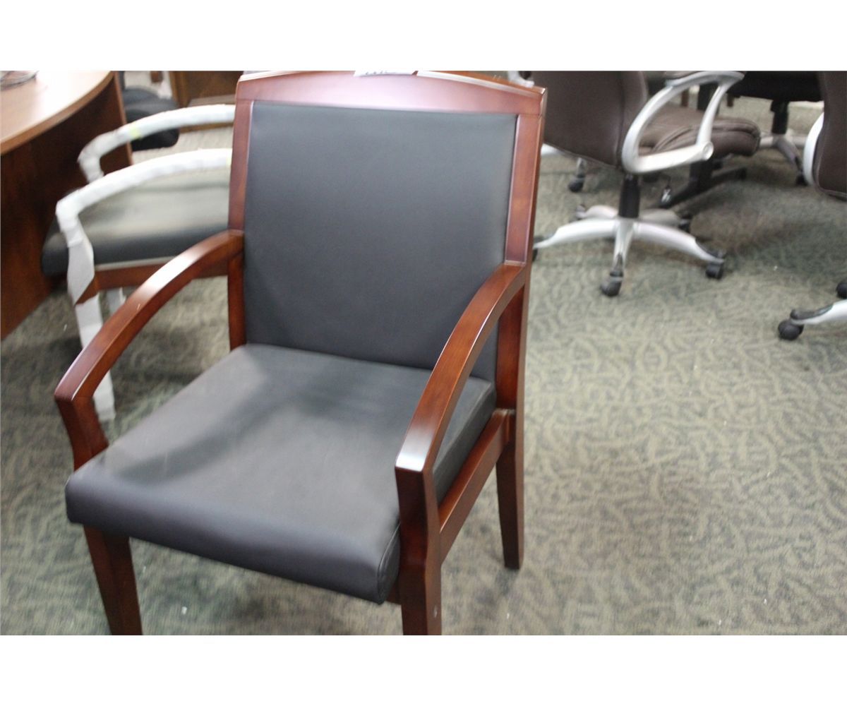 BLACK LEATHER CHERRY FRAMED CLIENT CHAIR