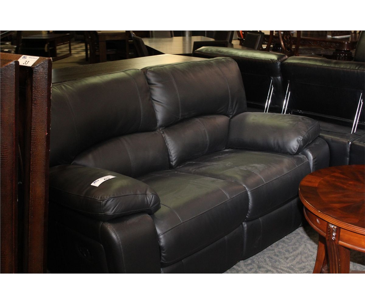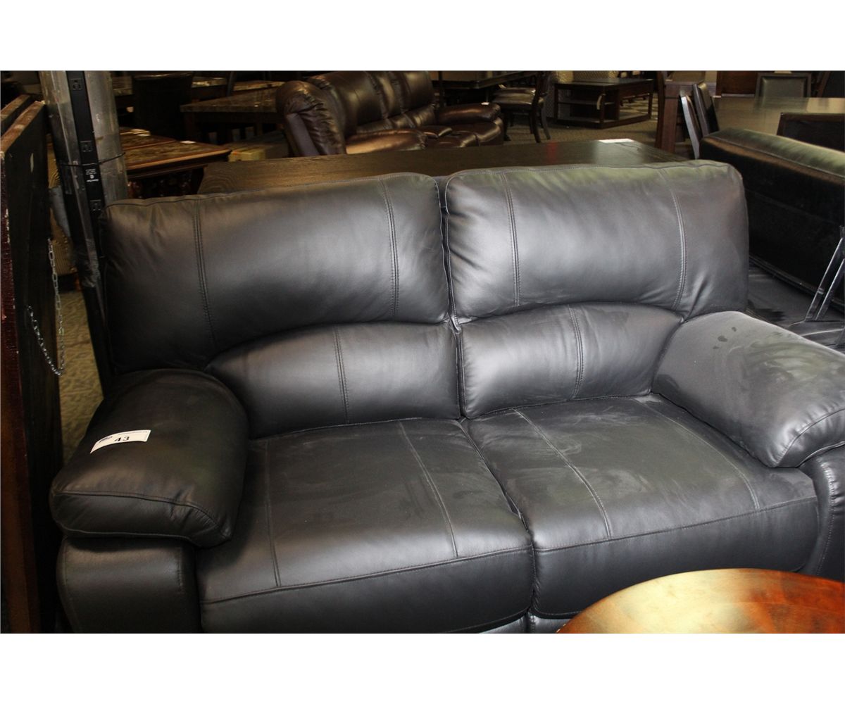 BLACK LEATHER DOUBLE RECLINING LOVE SEAT