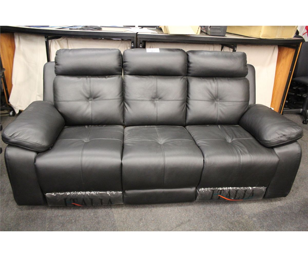 BLACK LEATHER ITALIA DOUBLE RECLINING SOFA (6" TEAR ON RIGHT SIDE)