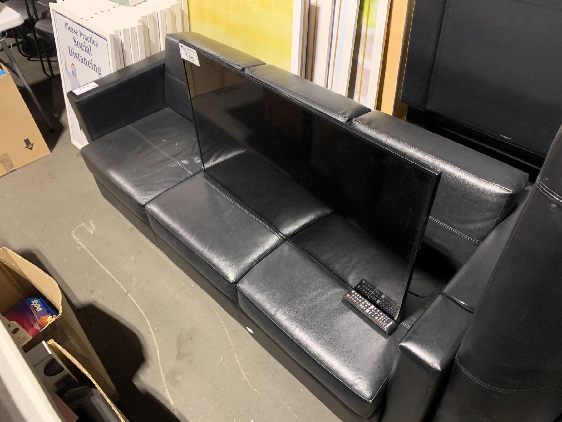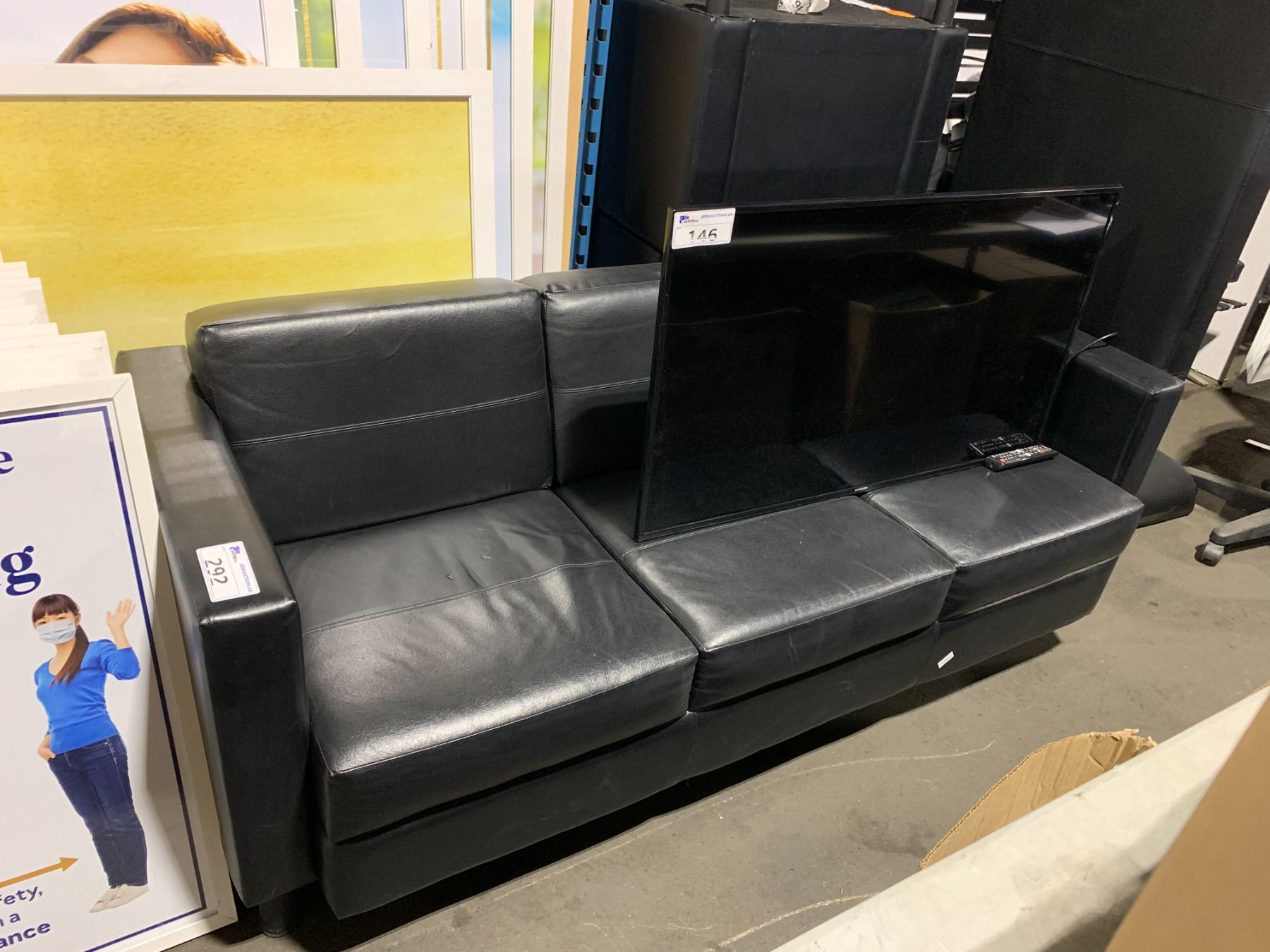 BLACK LEATHER LOOK MODERN 3 SEATER RECEPTION SOFA