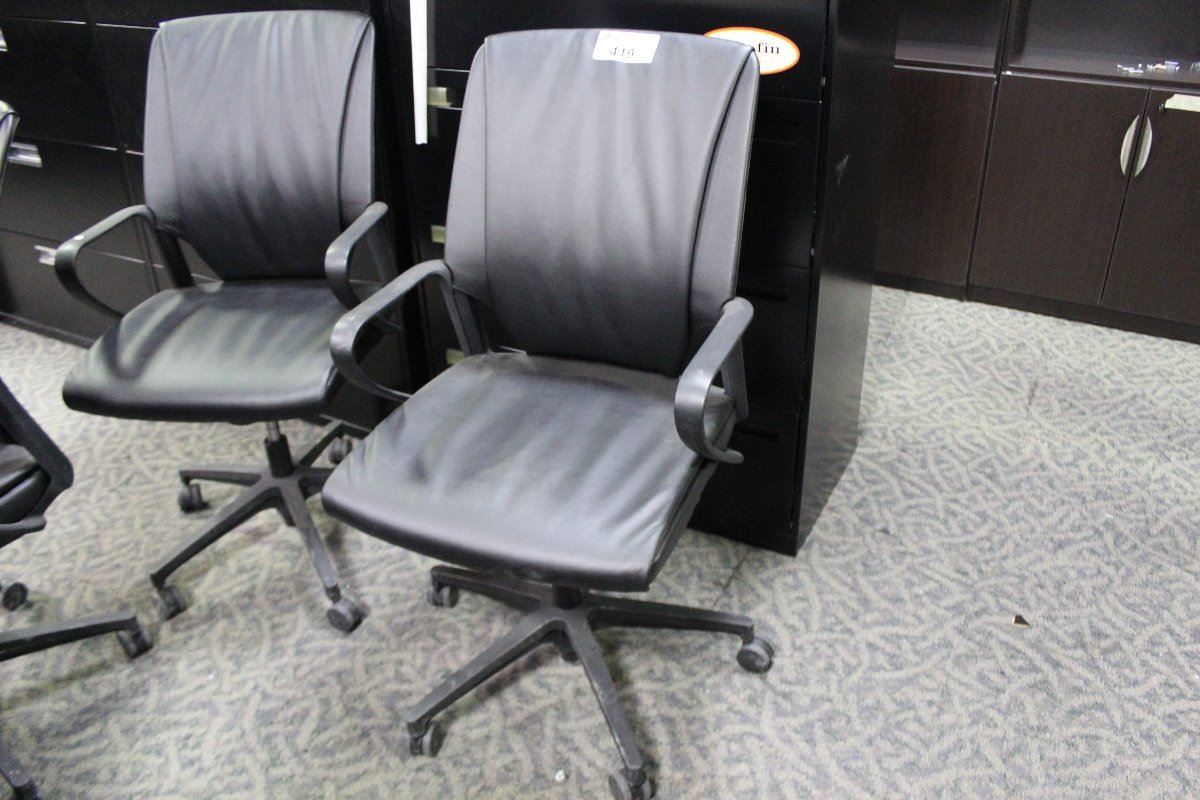 BLACK LEATHER LOOPED ARM MID BACK EXECUTIVE CHAIR