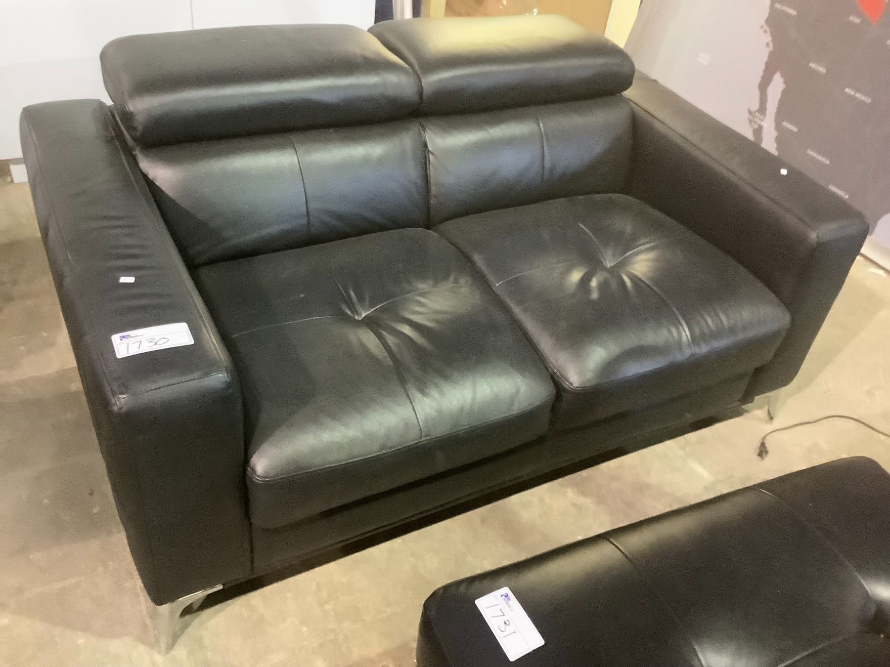 BLACK LEATHER LOVE SEAT WITH HEAD RESTS
