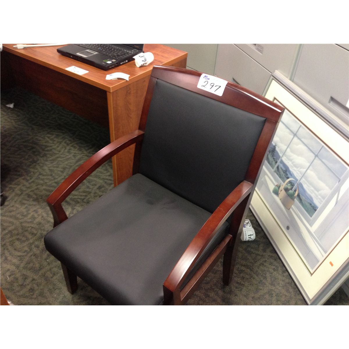 BLACK LEATHER MAHOGANY FRAME CLIENT CHAIR