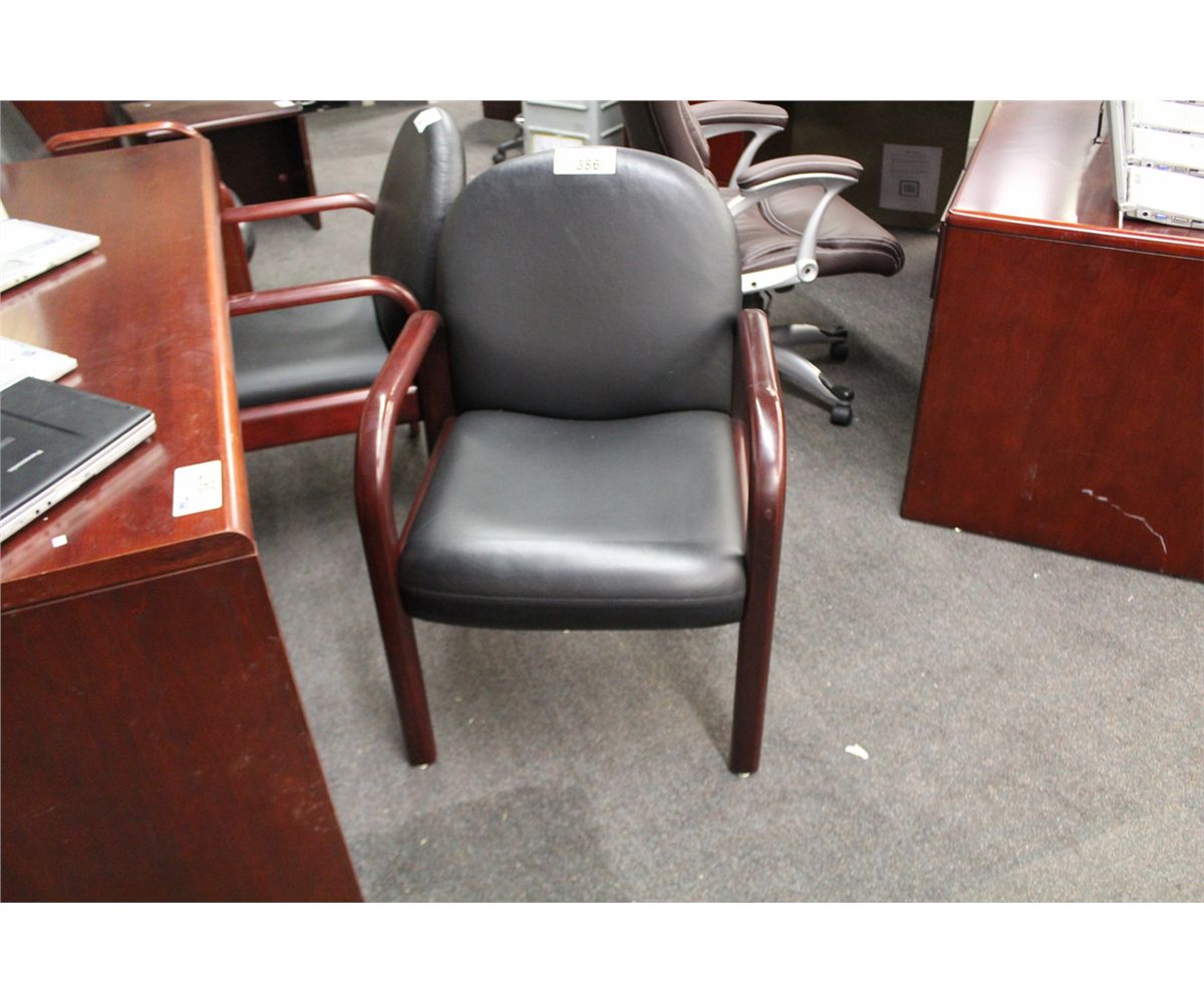 BLACK LEATHER MAHOGANY FRAMED CLIENT CHAIR