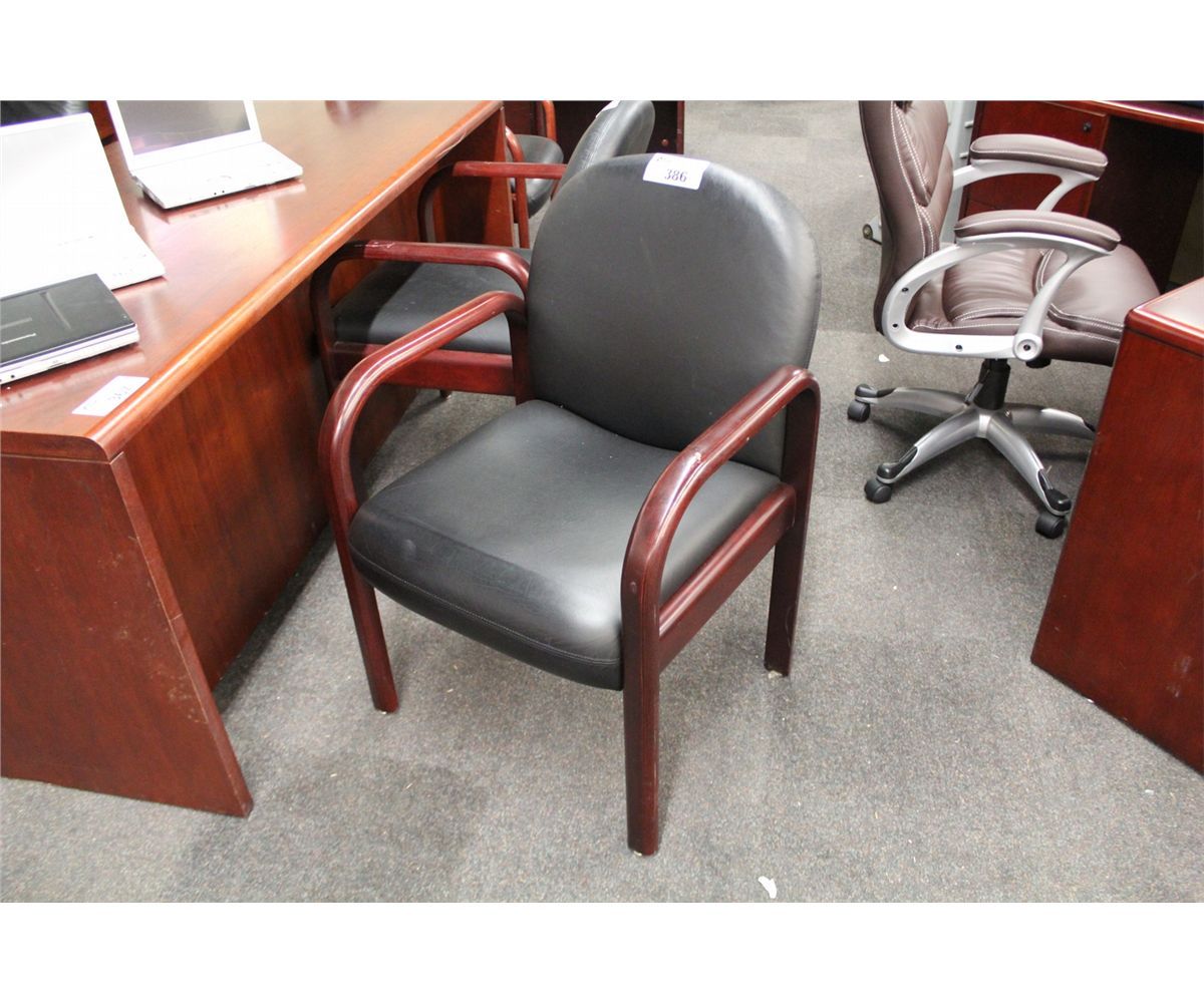BLACK LEATHER MAHOGANY FRAMED CLIENT CHAIR