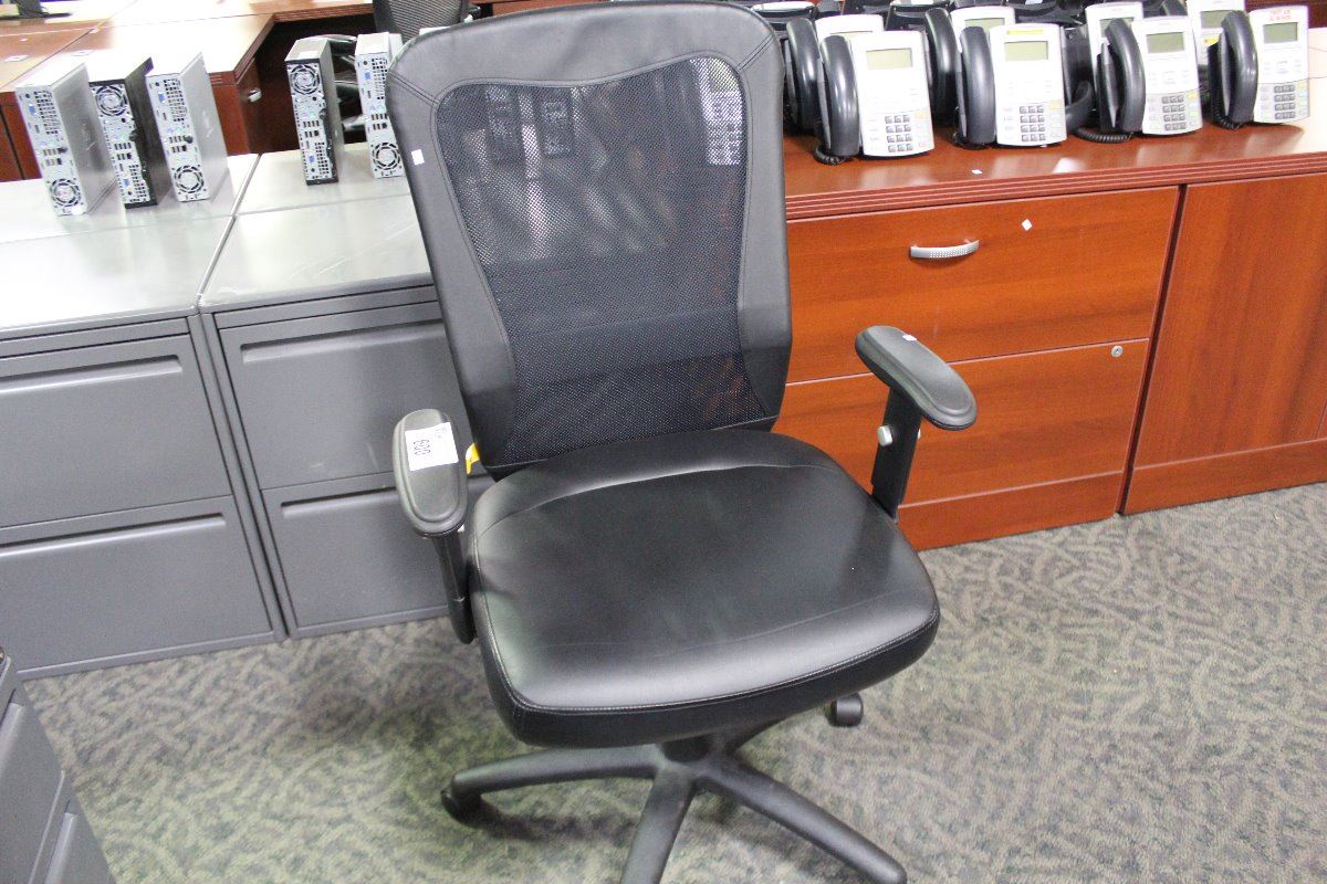 BLACK LEATHER MESH BACK ADJUSTABLE ARM TASK CHAIR