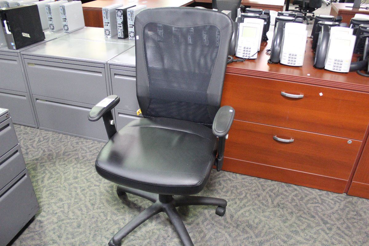 BLACK LEATHER MESH BACK ADJUSTABLE ARM TASK CHAIR