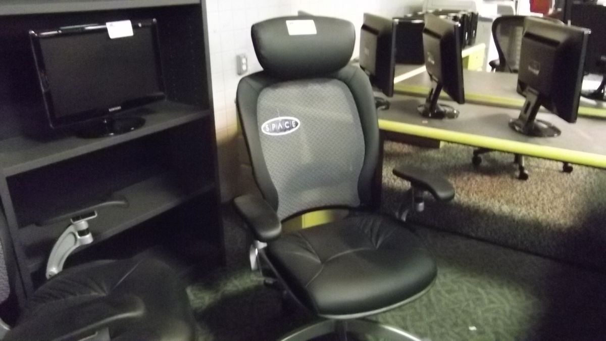 BLACK LEATHER MESH BACK SPACE EXECUTIVE HIGHBACK CHAIR WITH HEADREST