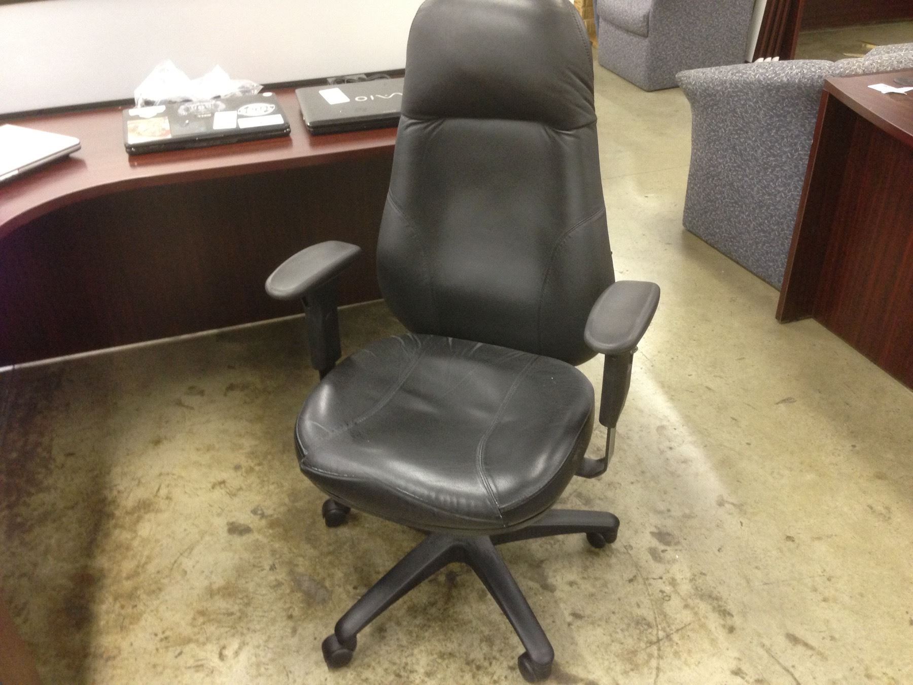 BLACK LEATHER OBUS STYLE FULLY ADJUSTABLE HIGH BACK TASK CHAIR