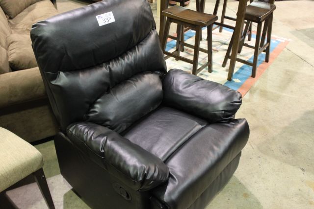 BLACK LEATHER OVERSTUFFED RECLINING EASY CHAIR