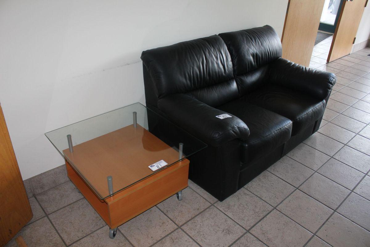 BLACK LEATHER RECEPTION SOFA AND COFFEE TABLE