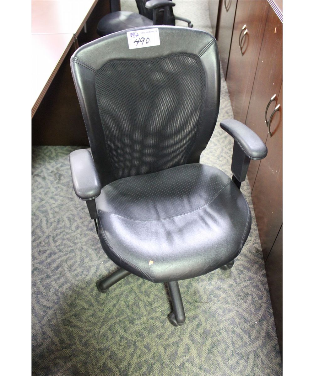 BLACK LEATHER SEAT MESHBACK ERGONOMIC TASK CHAIR