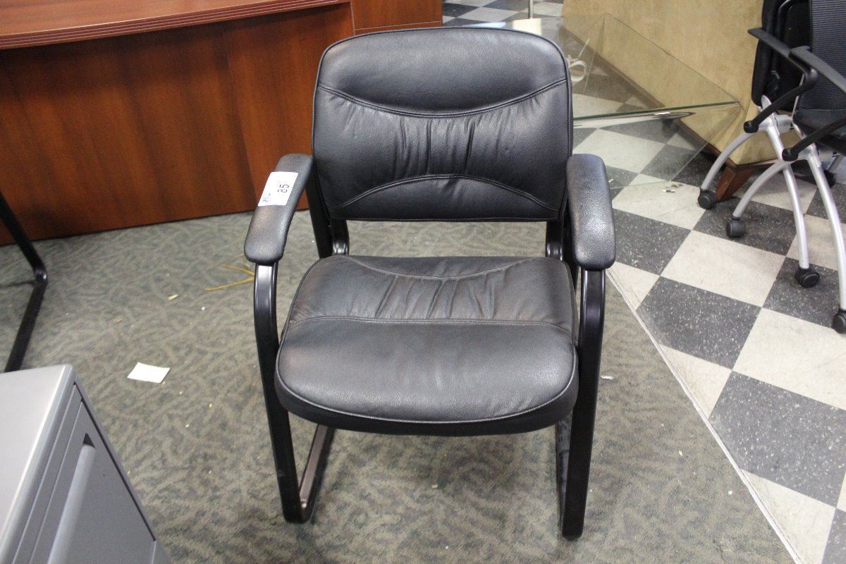 BLACK LEATHER SLED BASE CLIENT CHAIR