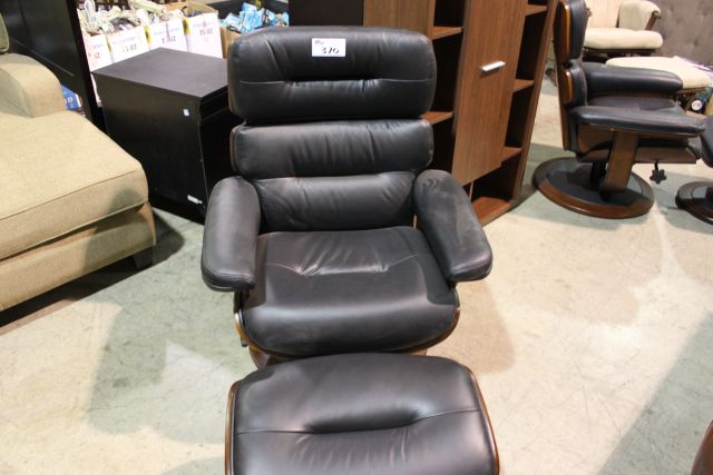 BLACK LEATHER SWIVEL RECLINING CHAIR WITH OTTOMAN