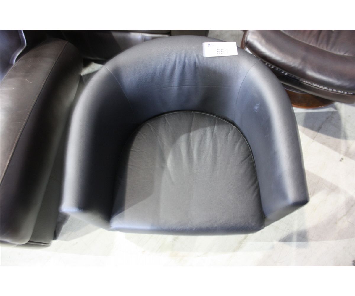 BLACK LEATHER TUB CHAIR