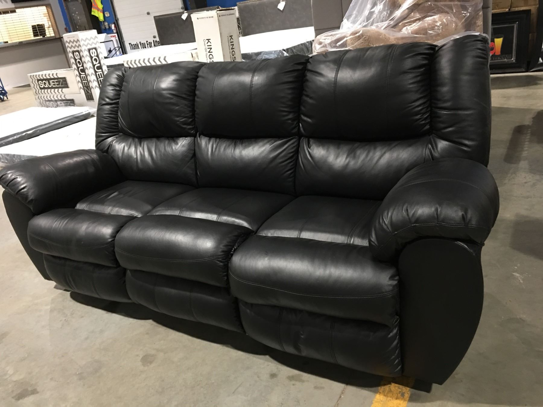 BLACK LEATHER UPHOLSTERED RECLINING SOFA