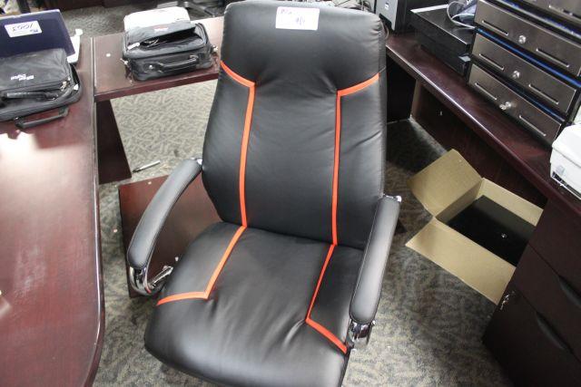 BLACK LEATHER W/RED TRIM HIGH BACK EXECUTIVE CHAIR