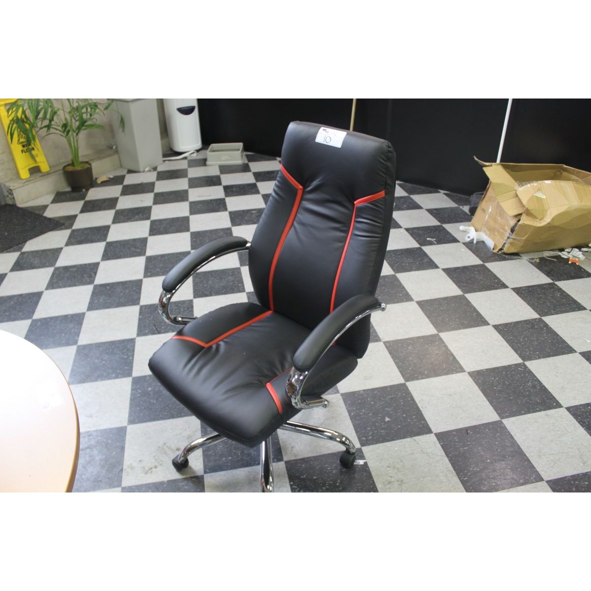 BLACK LEATHER WITH RED TRIM BOARDROOM CHAIR