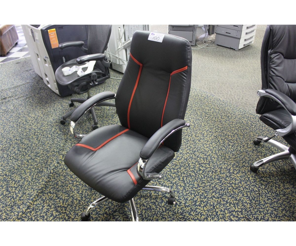 BLACK LEATHER WITH RED TRIM EXECUTIVE CHAIR