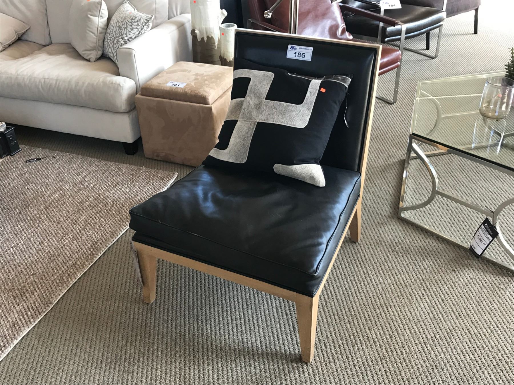 BLACK LEATHER & WOOD ARMLESS OCCASIONAL CHAIR