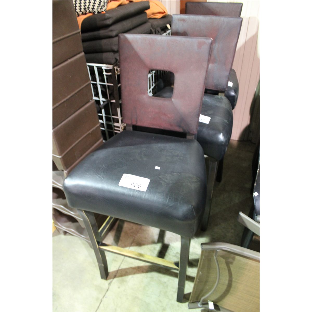 BLACK LEATHER WOOD FRAME BAR STOOL
