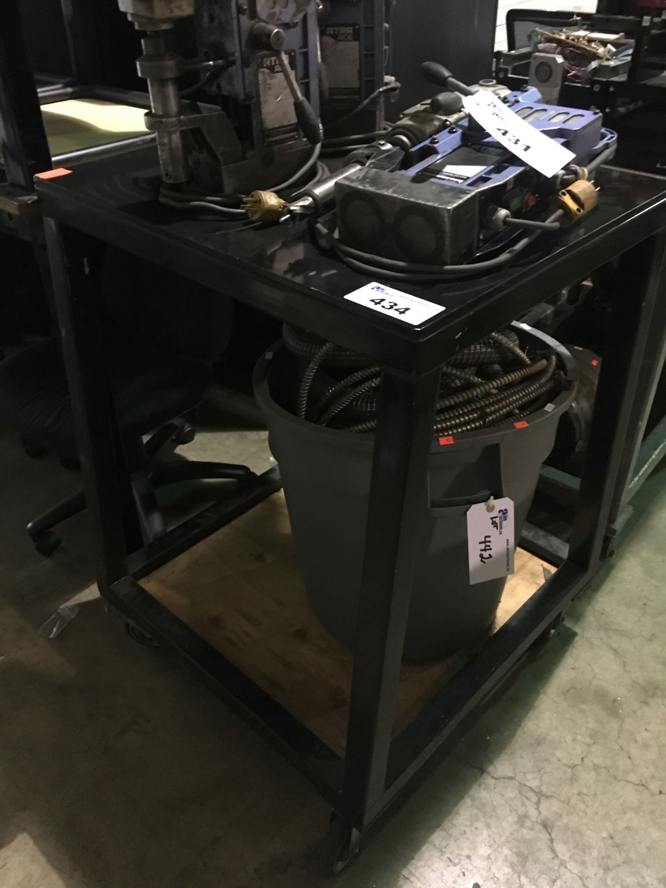 BLACK METAL 2 TIER MOBILE WORK TABLE & EQUIPMENT STAND
