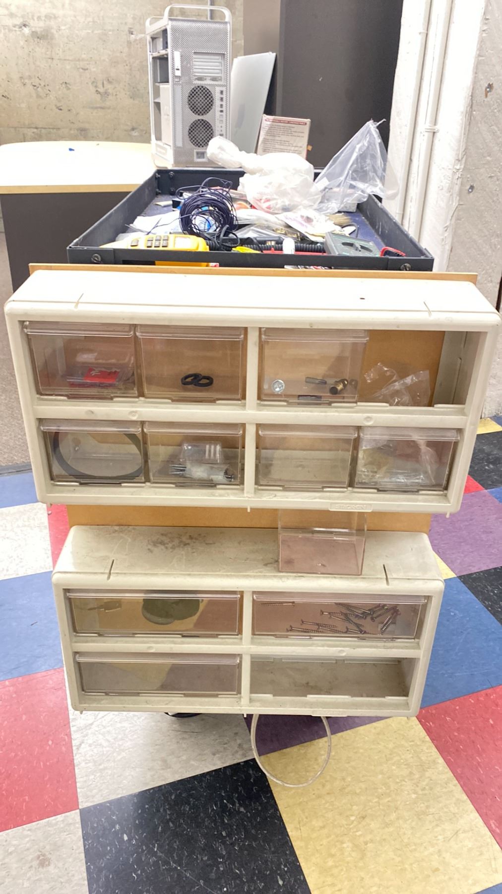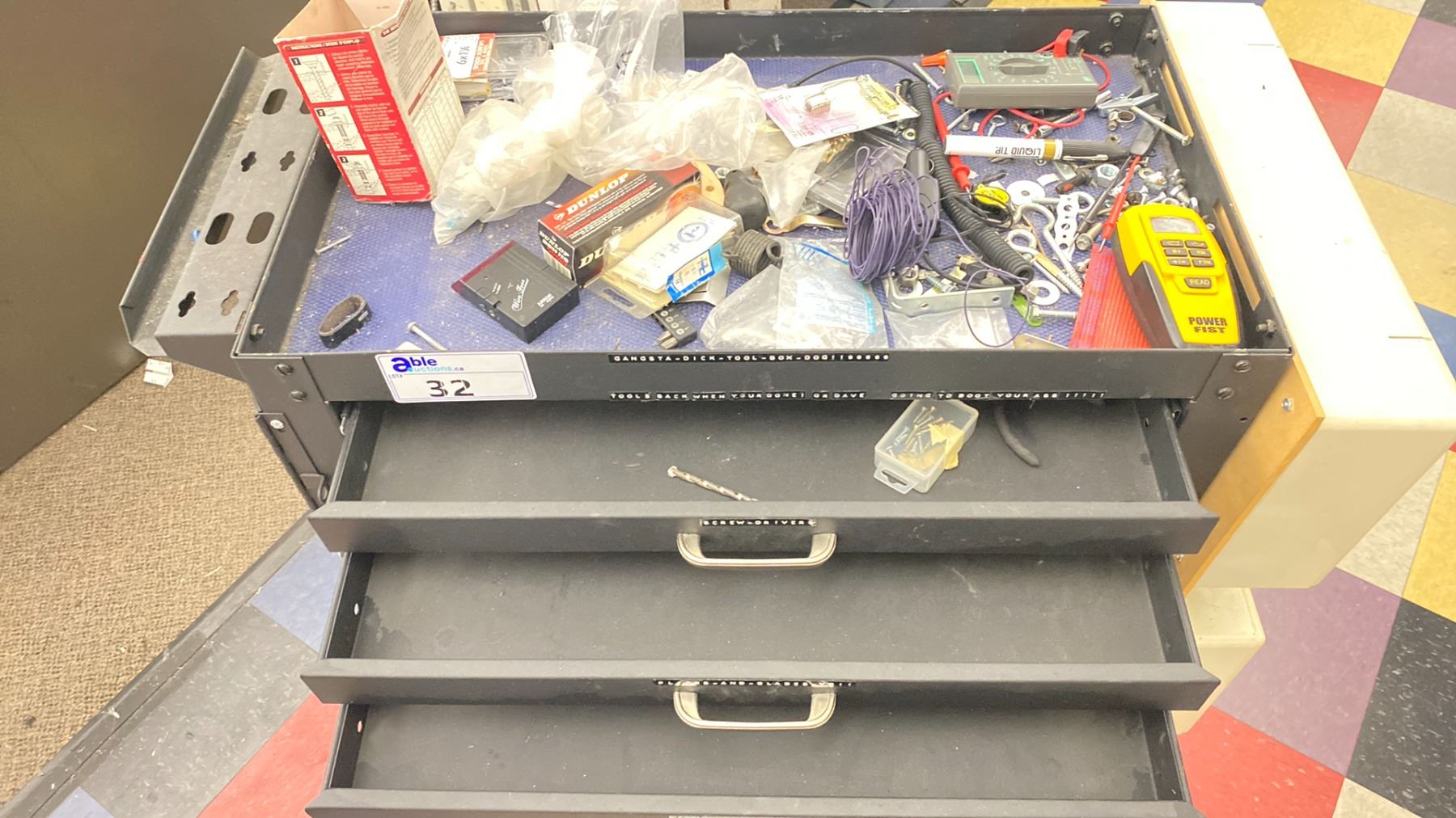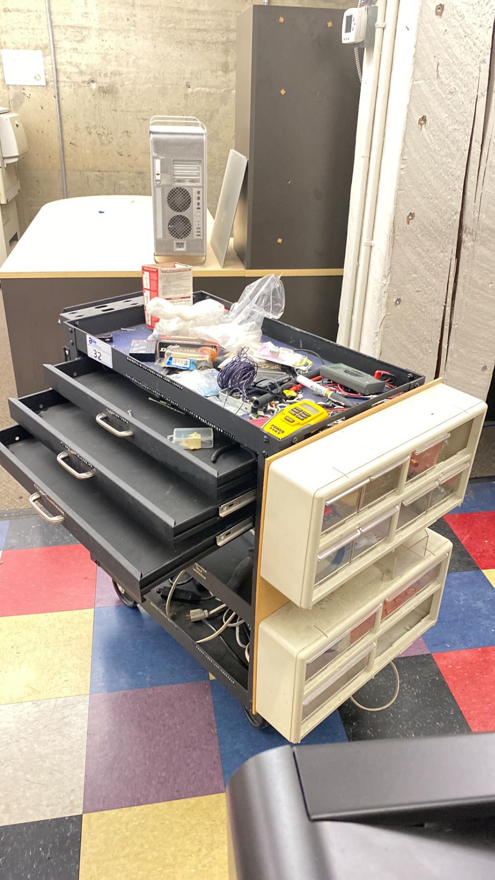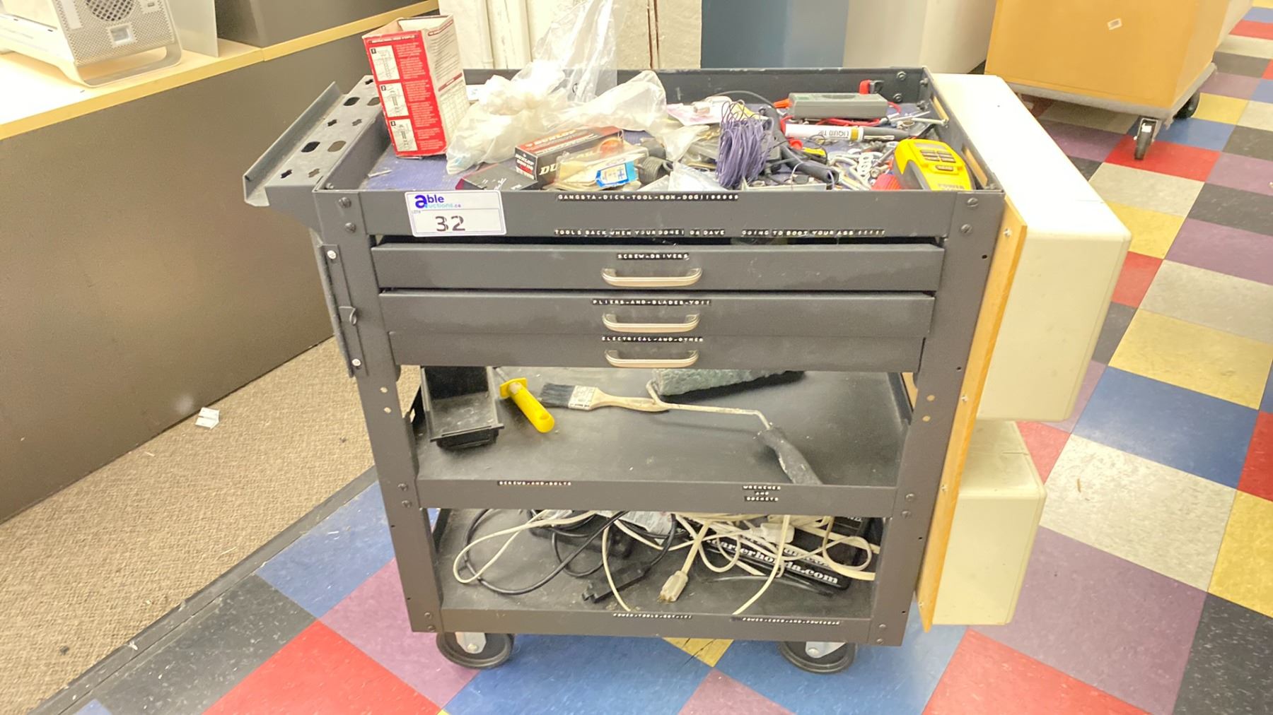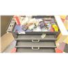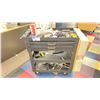 BLACK METAL 3 TIER 3 DRAWER MOBILE TOOL / TECH CART WITH ASSORTED TOOL CONTENTS
