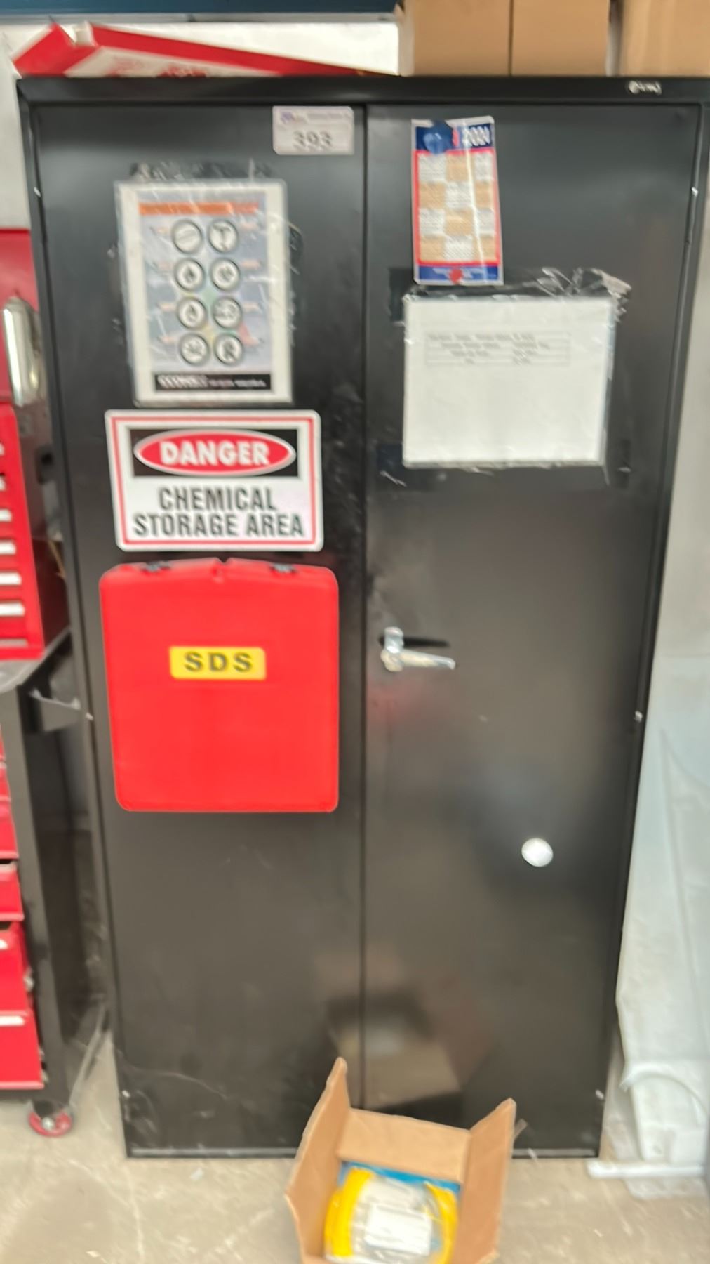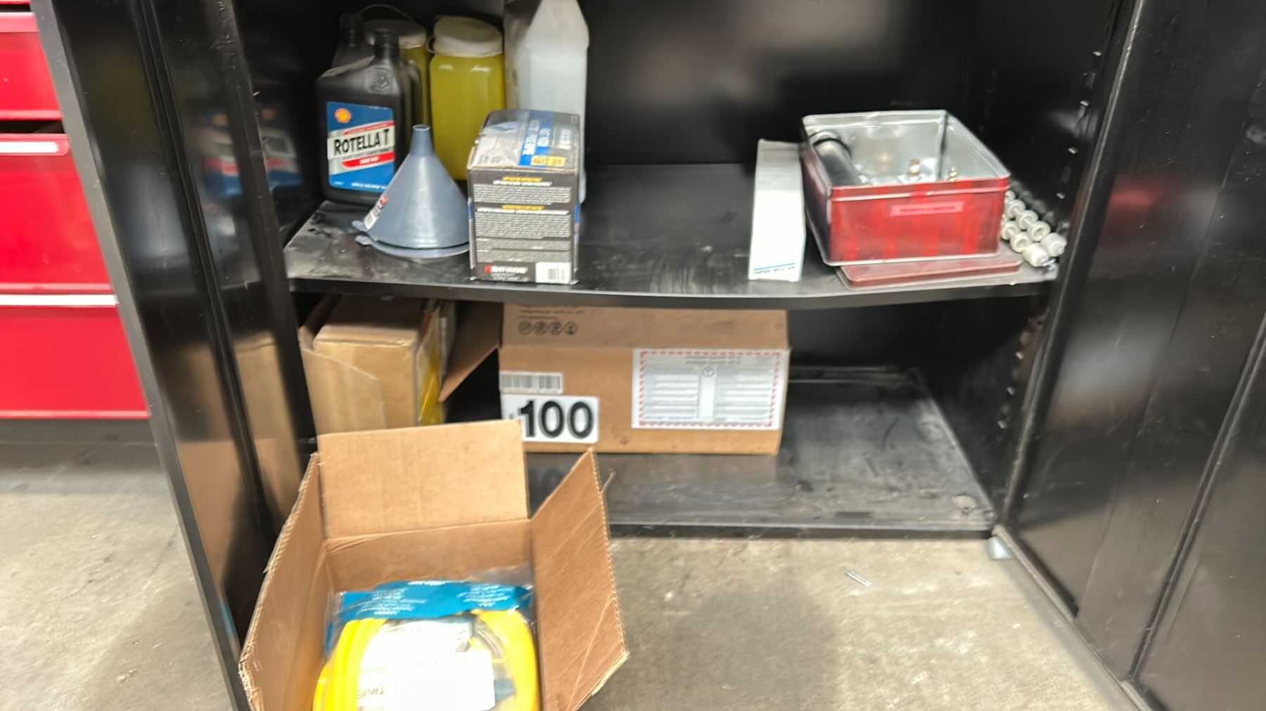 BLACK METAL 36" STORAGE CABINET WITH CONTENTS