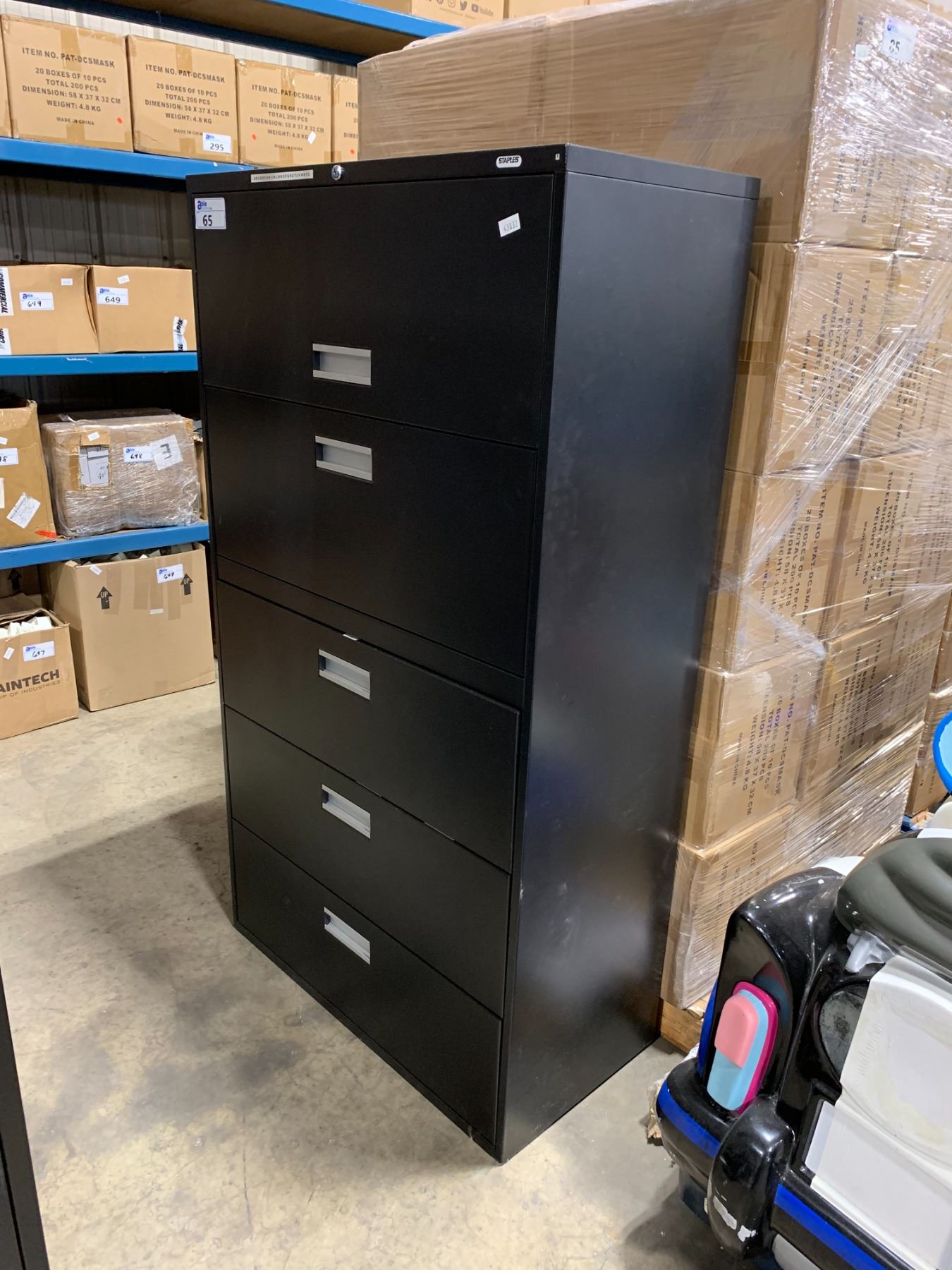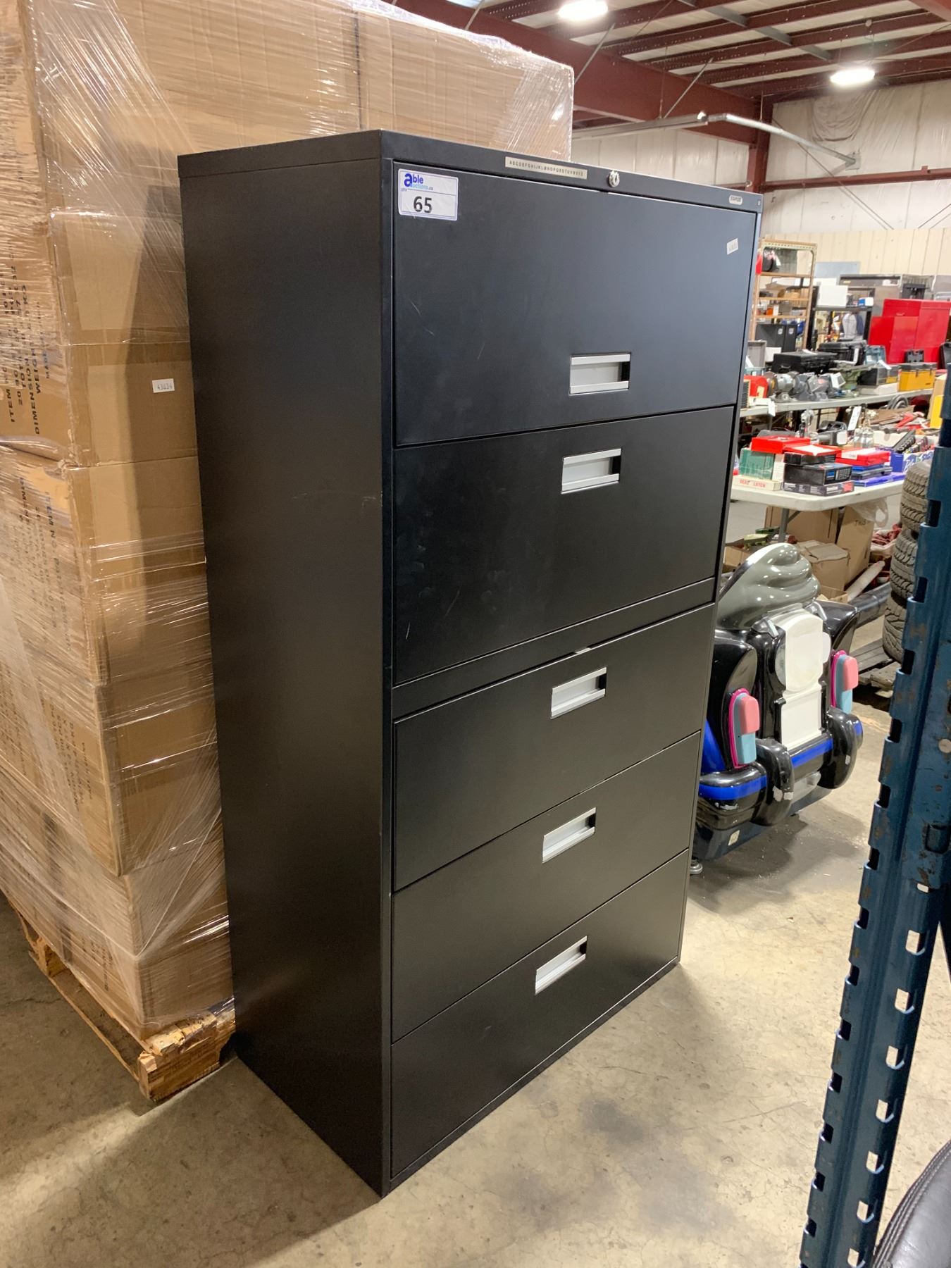 BLACK METAL 5 DRAWER 36"W X 18"D X 65"H LATERAL FILE / STORAGE CABINET