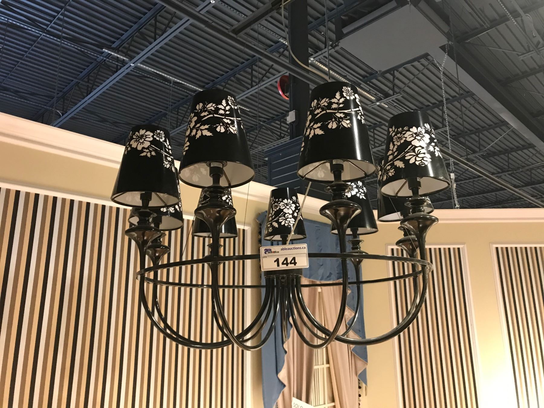 BLACK METAL FLOWER DESIGN 10 HEAD SHADED CHANDELIER