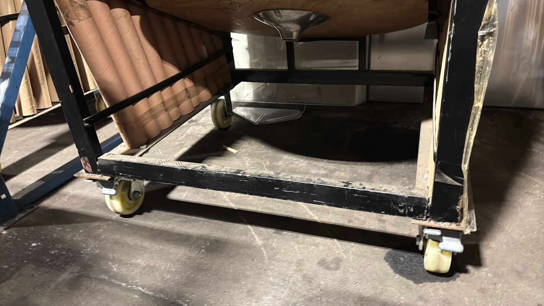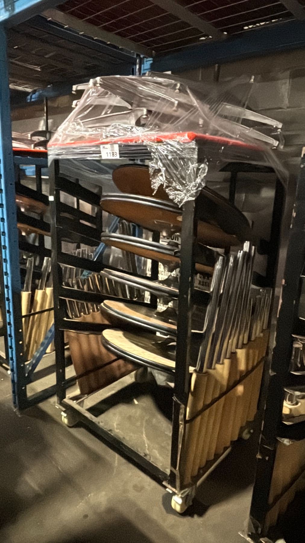 BLACK METAL MOBILE COCKTAIL TABLE EVENT CART WITH ASSORTED WOODEN 3 PCS COCKTAIL TABLES / STANDS / BASES *MOBILE CART INCLUDED*