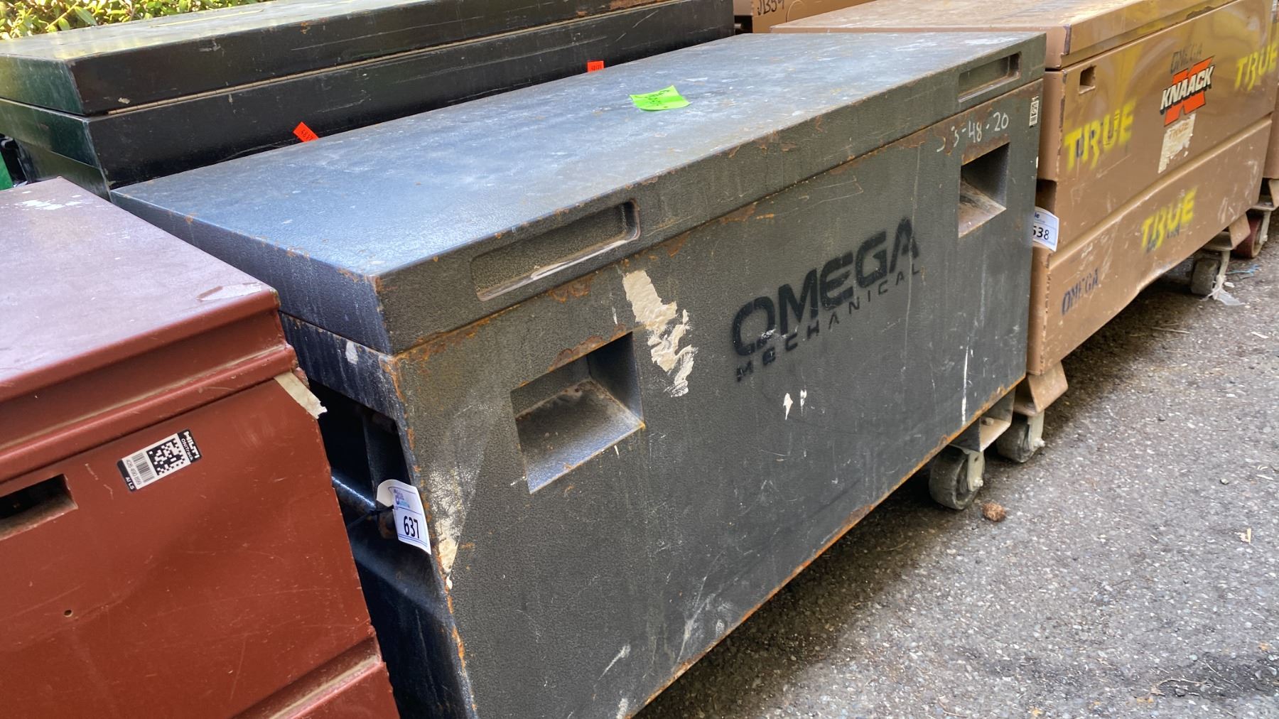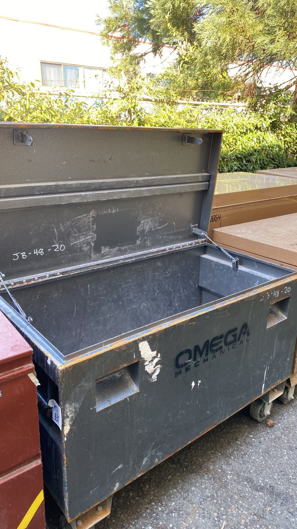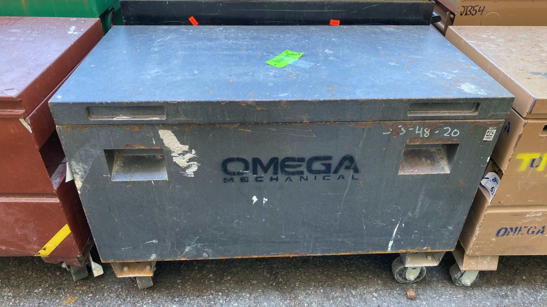 BLACK METAL MOBILE JOB BOX APPROX 48"L X 24"D X 34"H