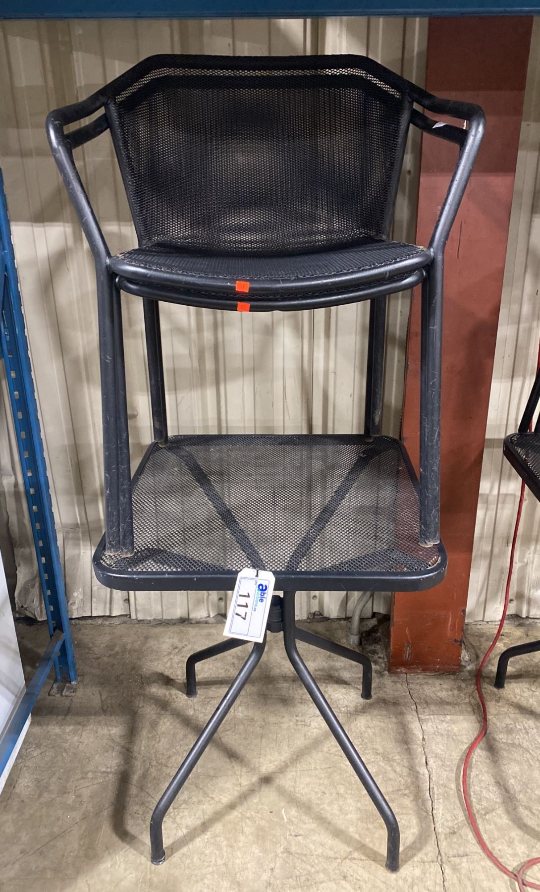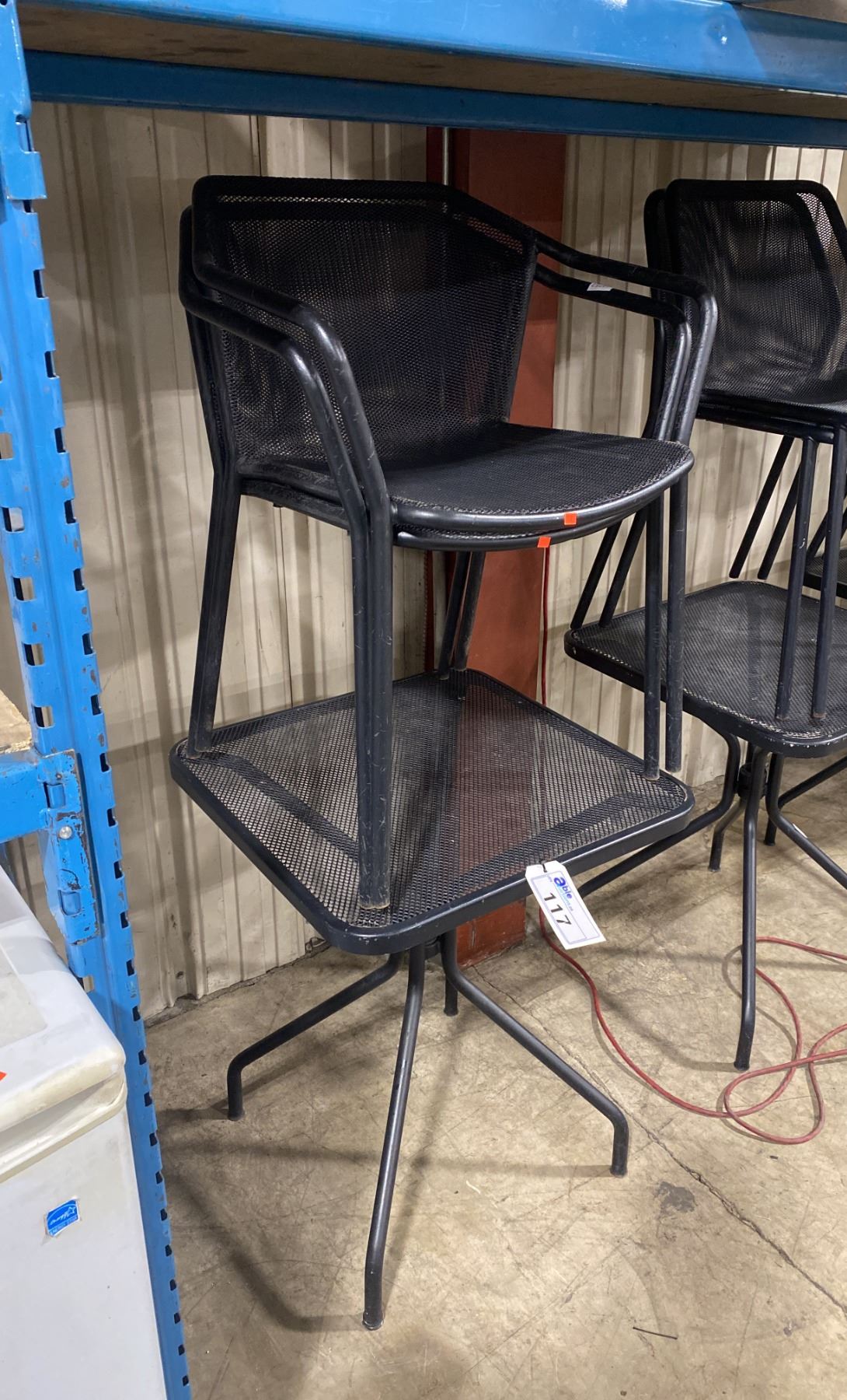 BLACK METAL OUTDOOR CAFE TABLE WITH 2 MATCHING ARM CHAIRS