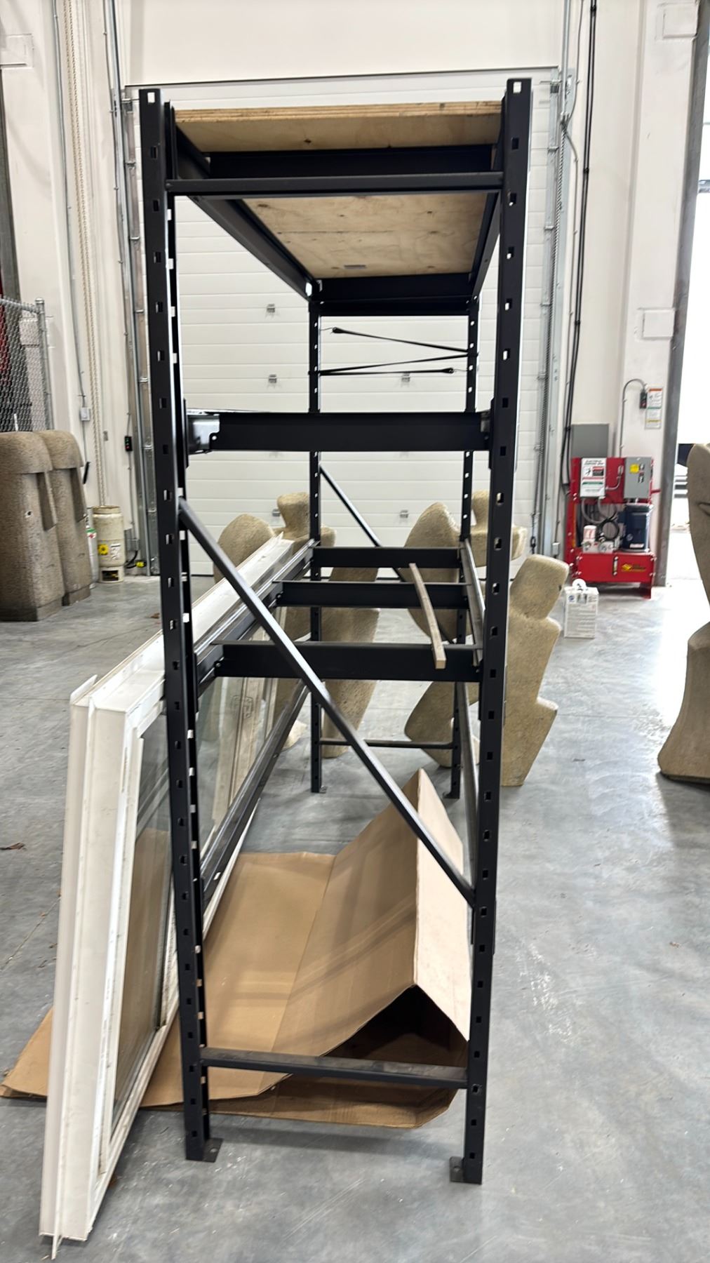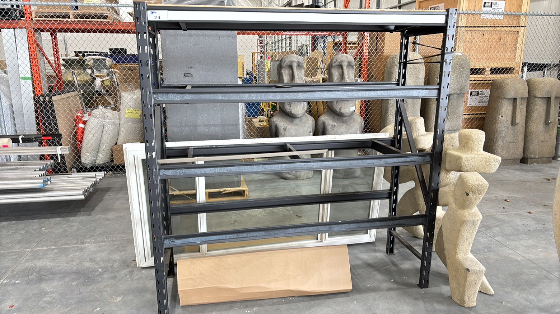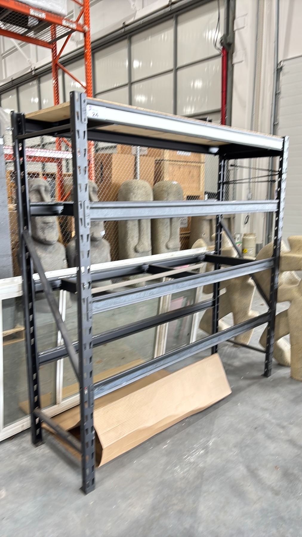 BLACK METAL SHELVING UNIT (ONLY 1 SHELF) 77"L X 6.5'H X 24"W