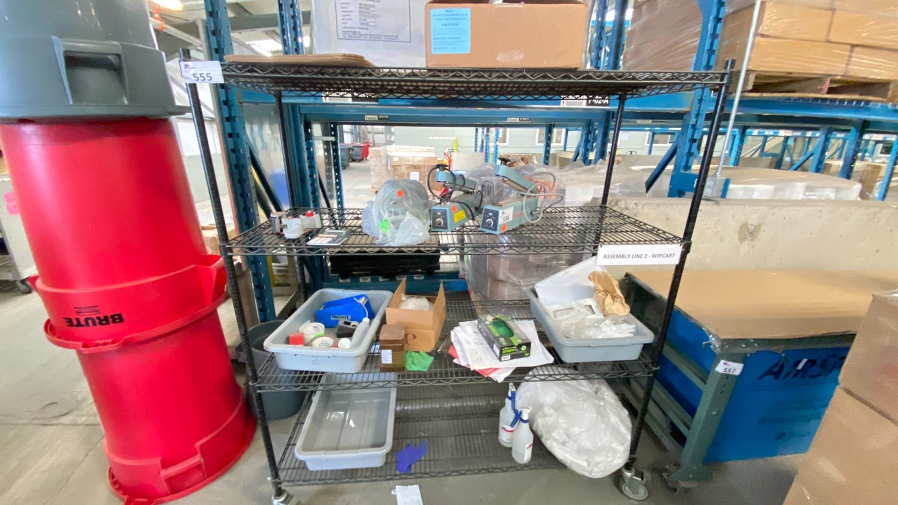BLACK METRO RACK 60X24 WITH 4 SHELVES ON WHEELS NO CONTENTS LOCATED NEAR FORKLIFT BAY BETWEEN BUILDINGS