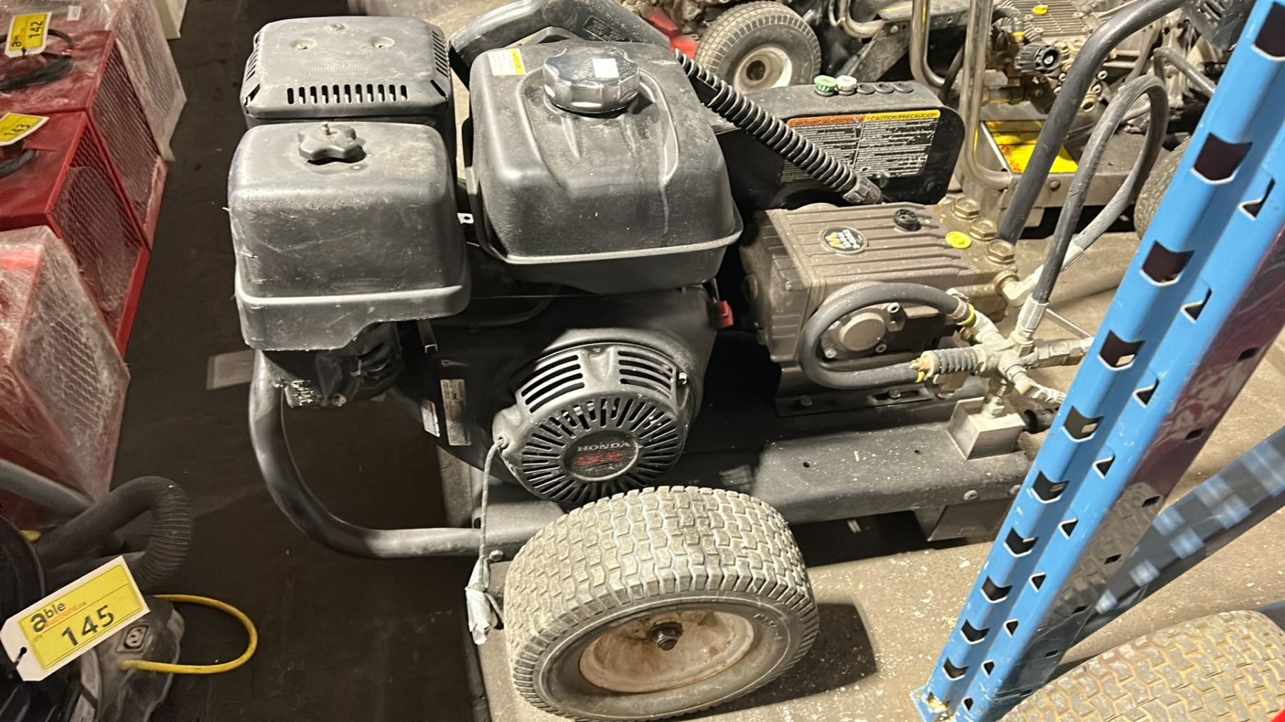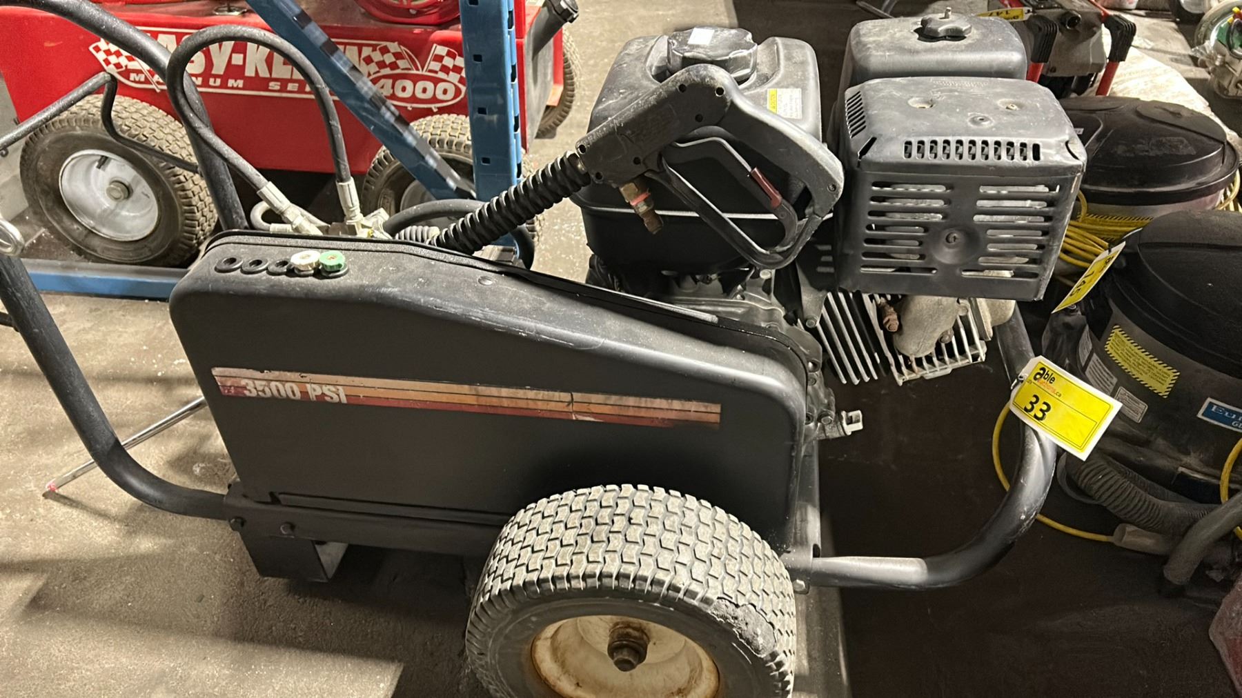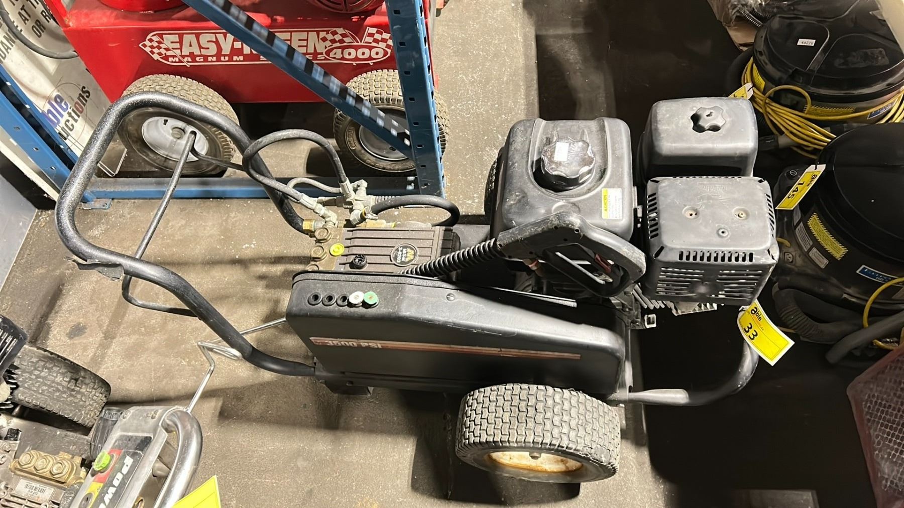 BLACK MOBILE INDUSTRIAL GAS POWERED 3500 PSI PRESSURE WASHER WITH WAND & 2 NOZZLE ATTACHMENTS *NO HOSE*