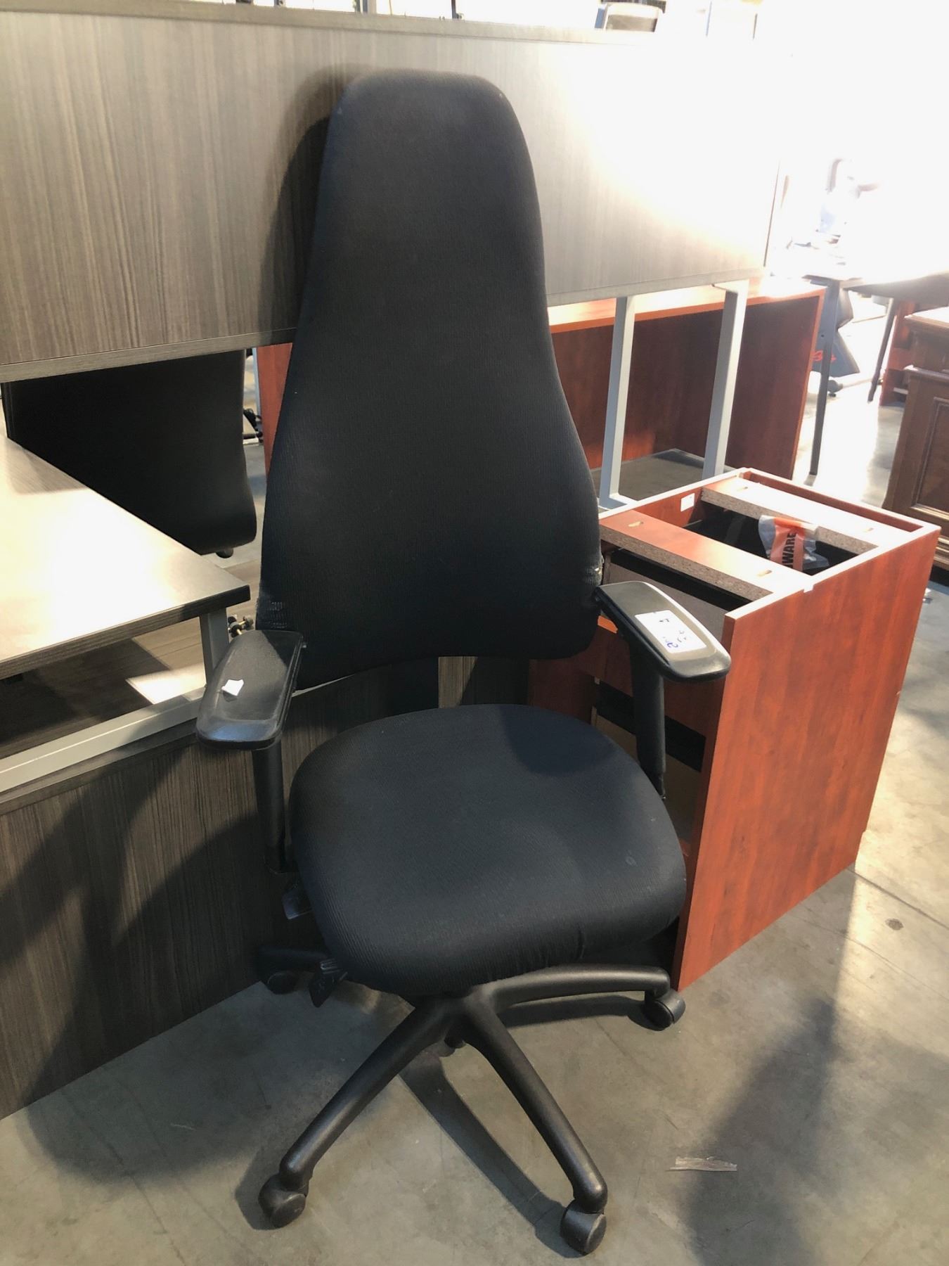 BLACK OBUS TYPE HI-BACK TASK CHAIR WITH SOME CONDITION ISSUES