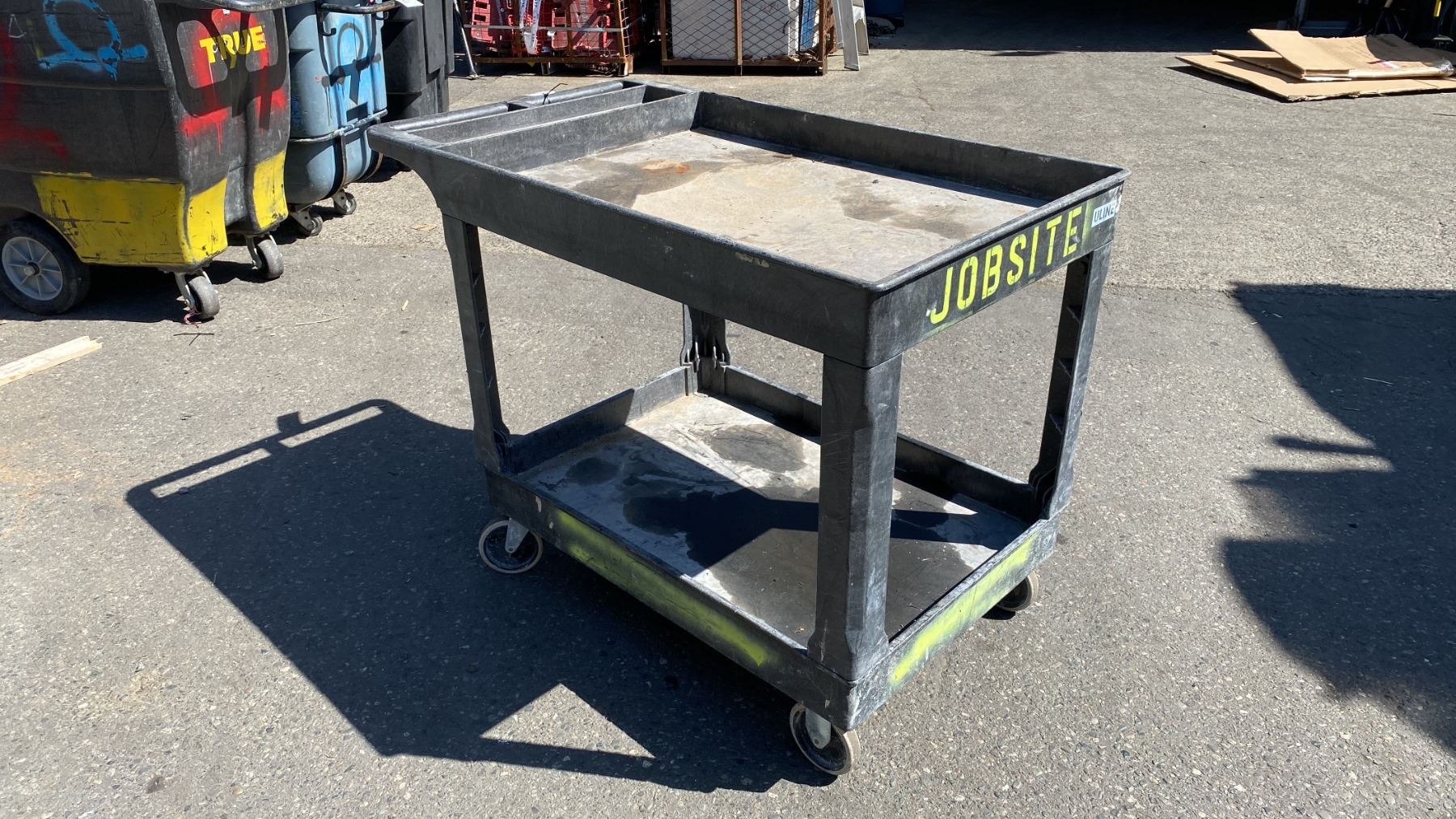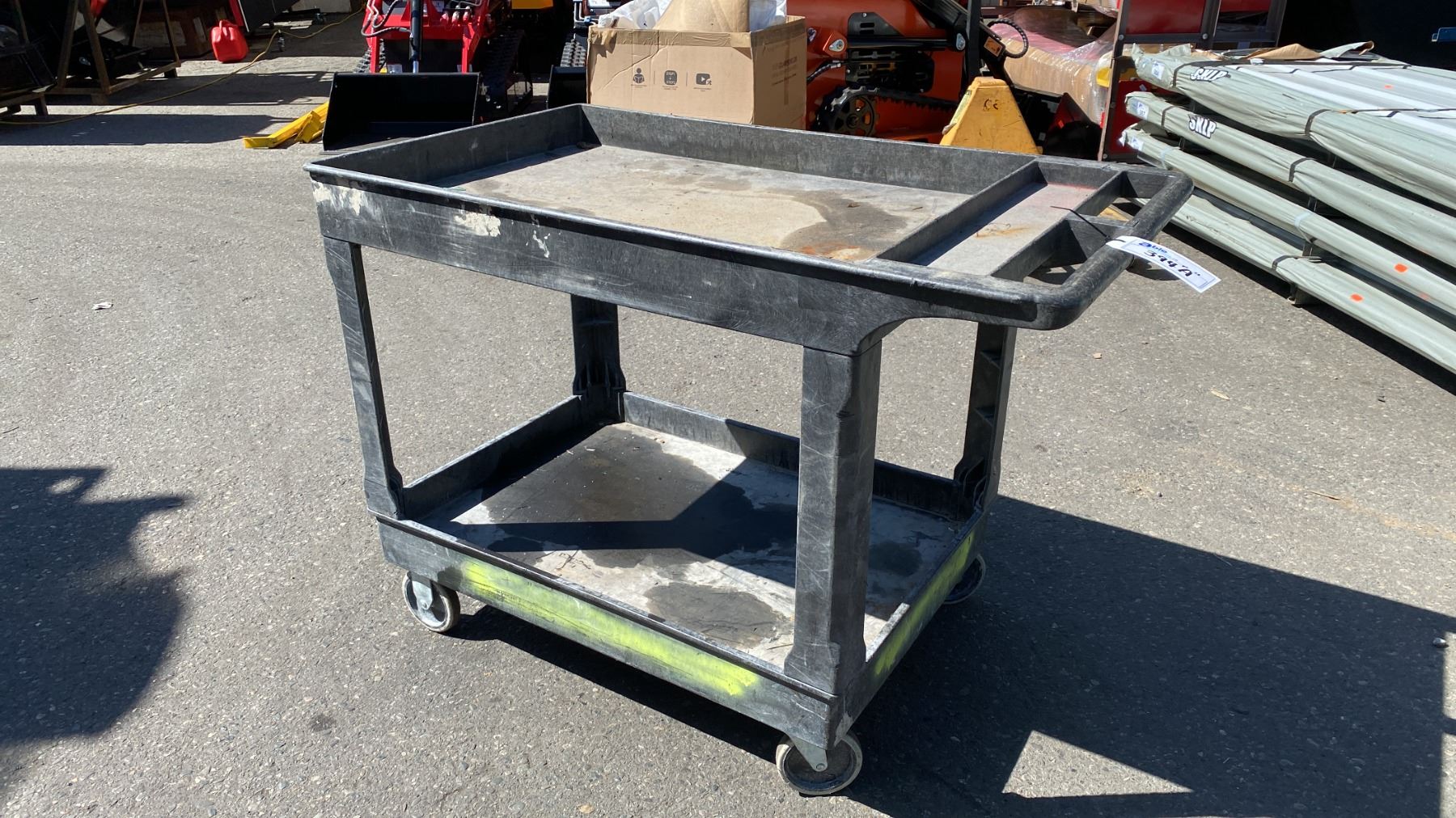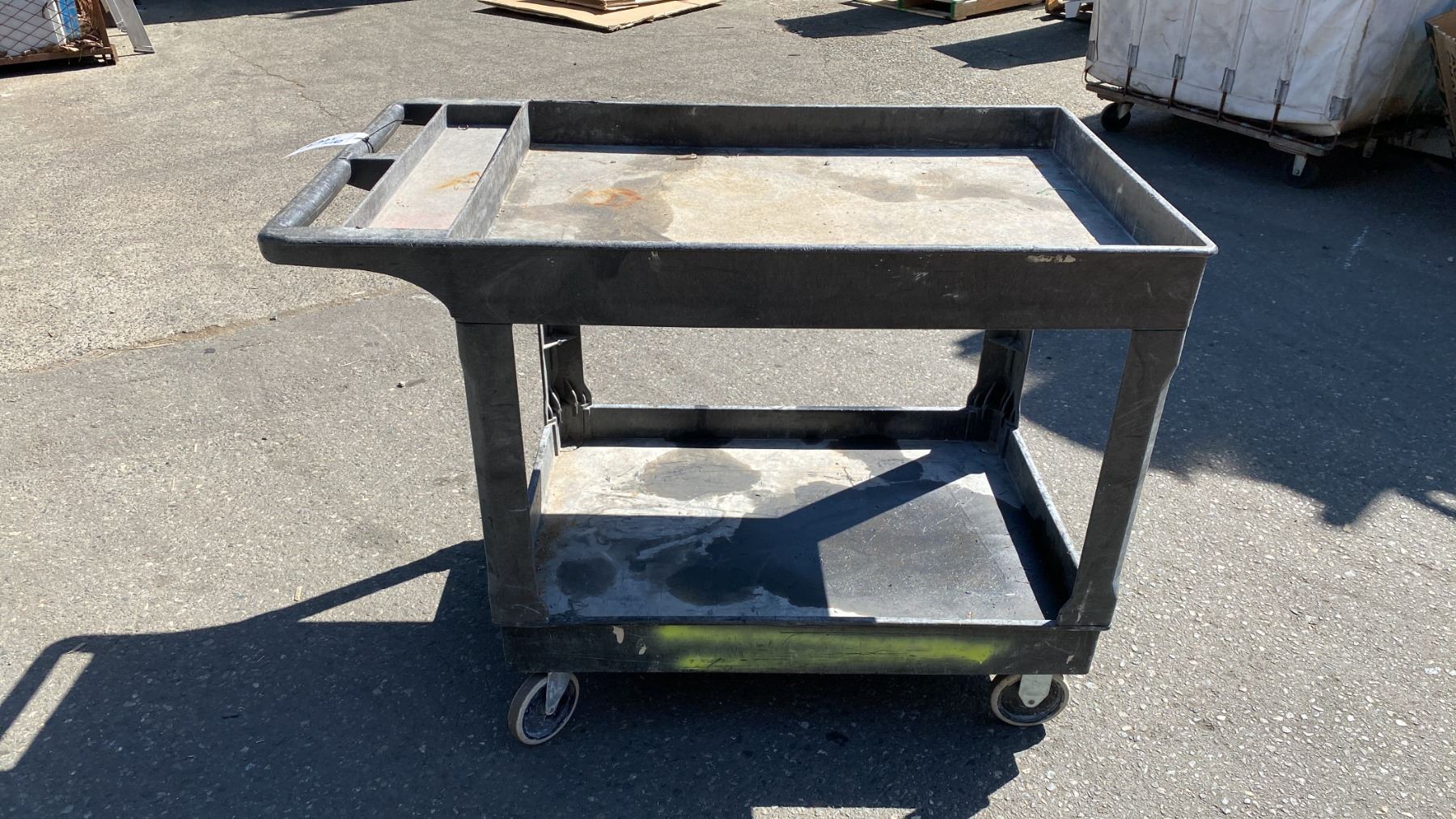 BLACK PLASTIC 2 TIER MOBILE UTILITY CART