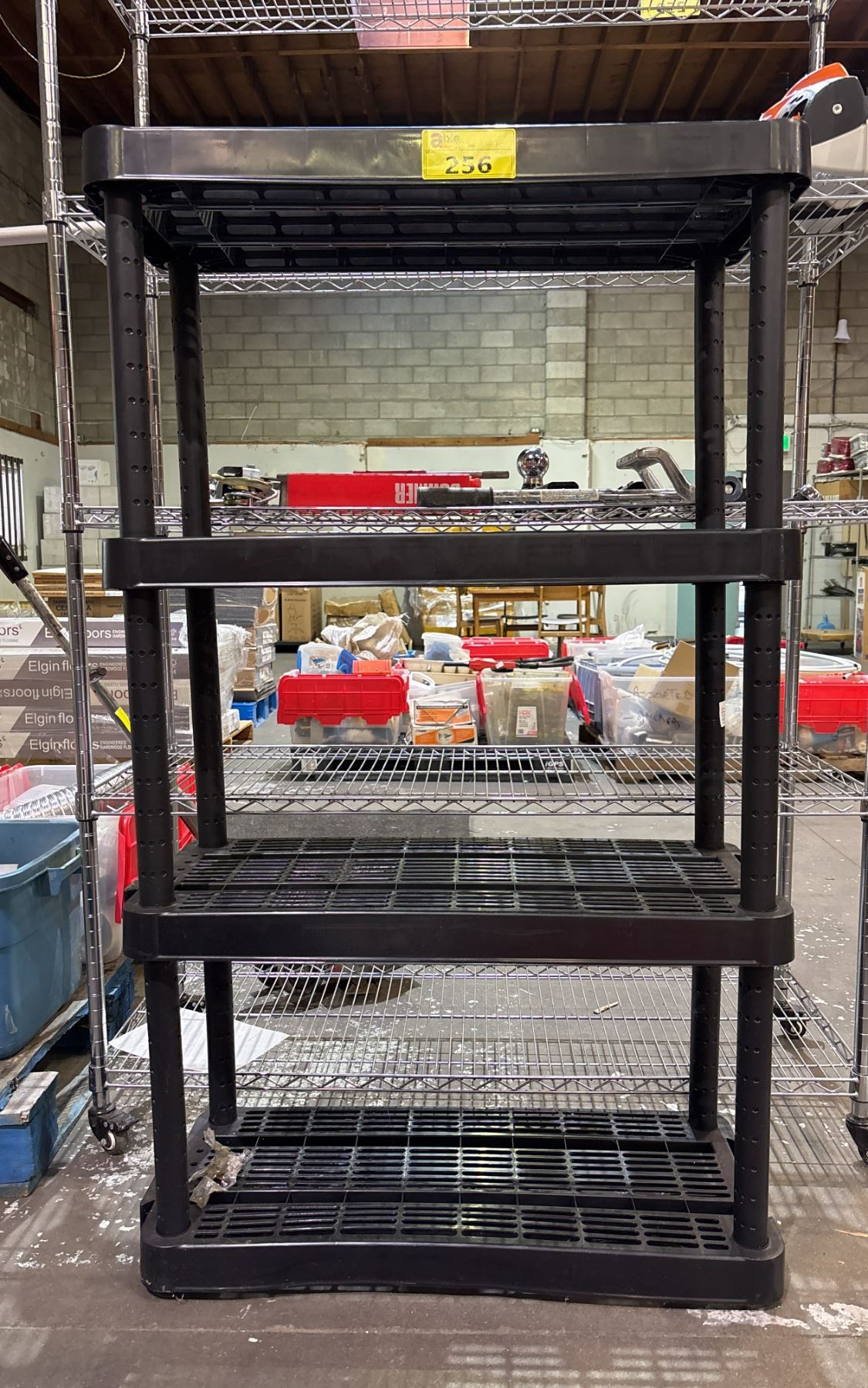 BLACK PLASTIC 4 TIER STORAGE SHELF