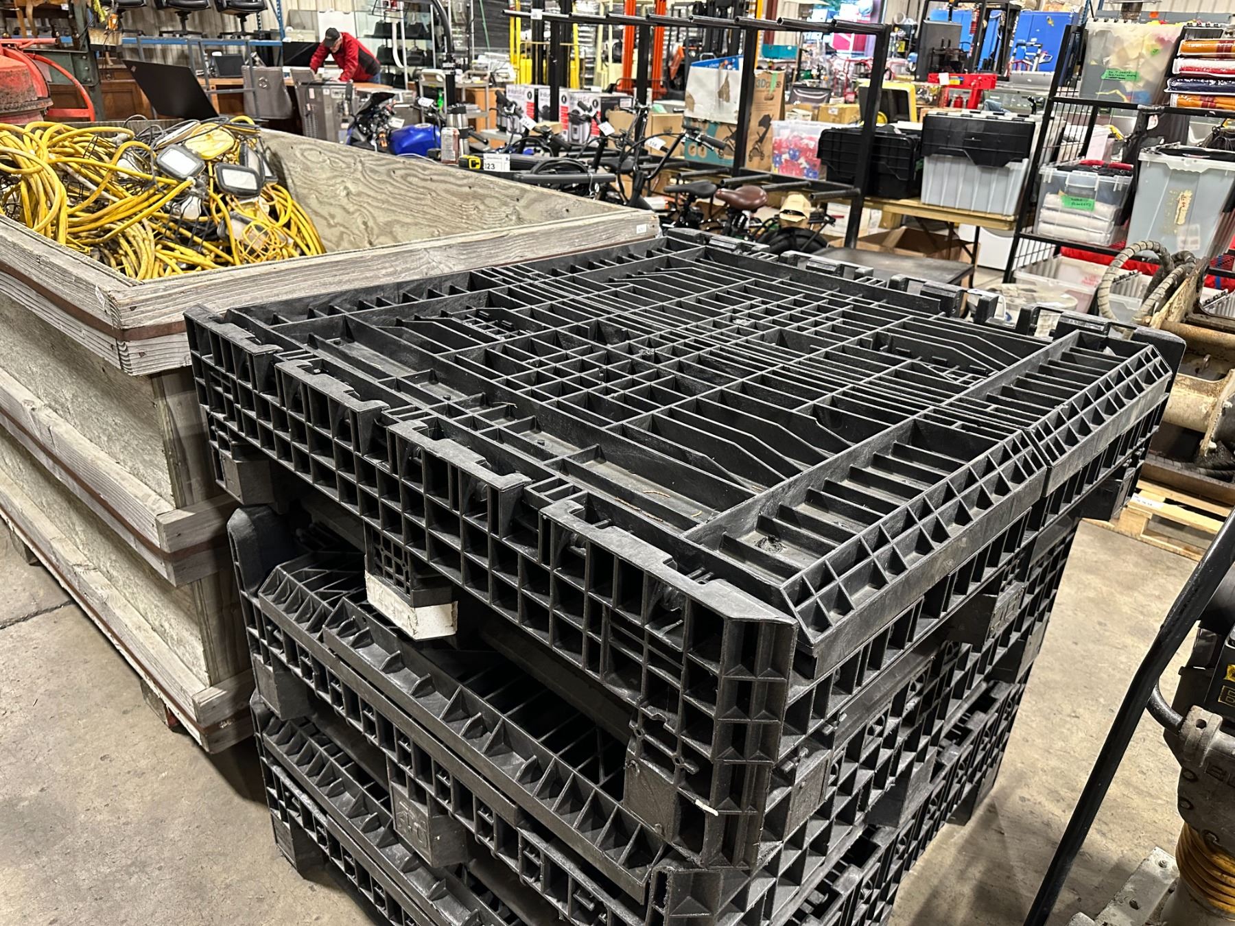 BLACK PLASTIC HEAVY DUTY COLLAPSIBLE PALLET STORAGE CRATE