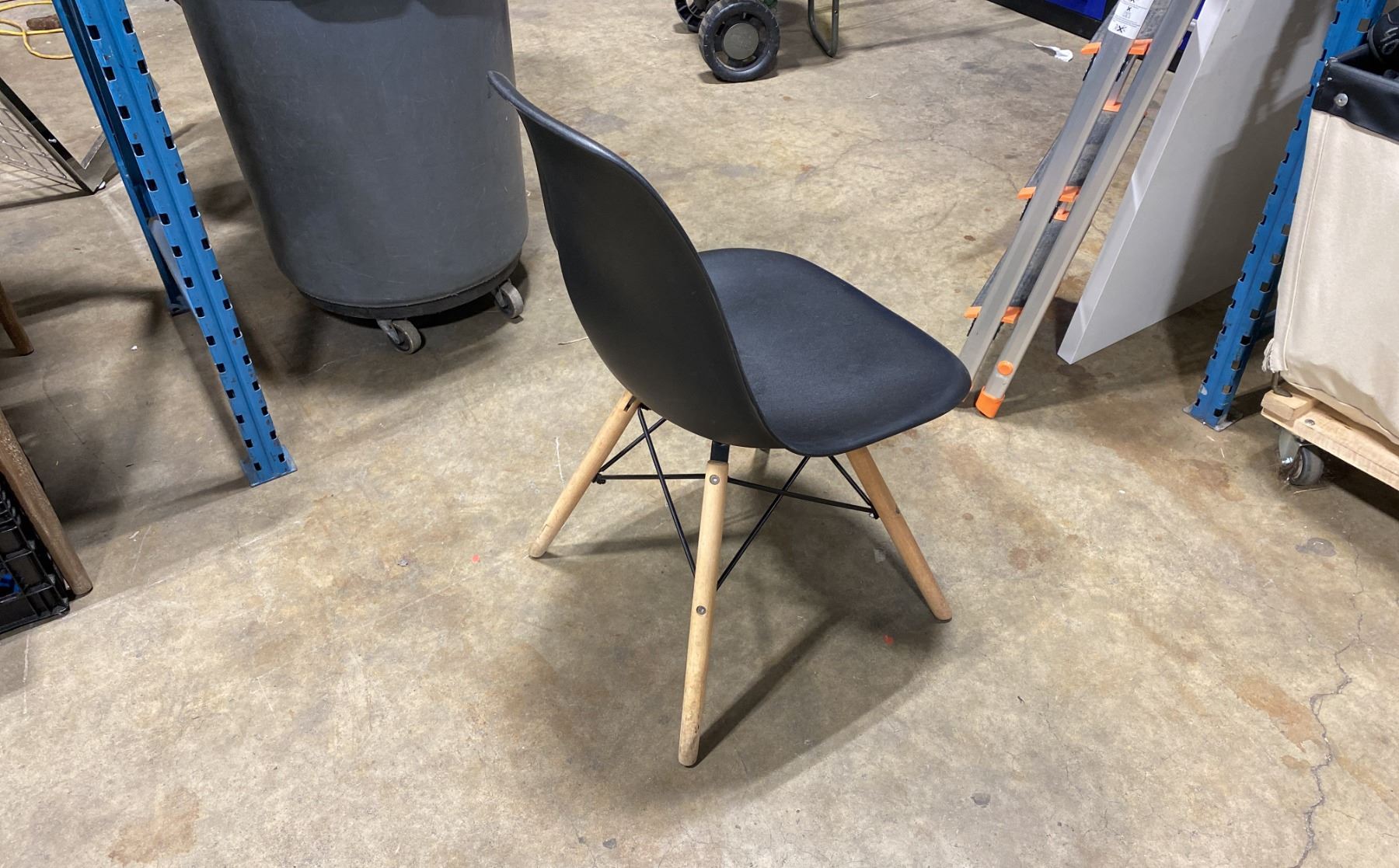 BLACK PLASTIC/NATURAL WOOD MODERN SIDE CHAIR