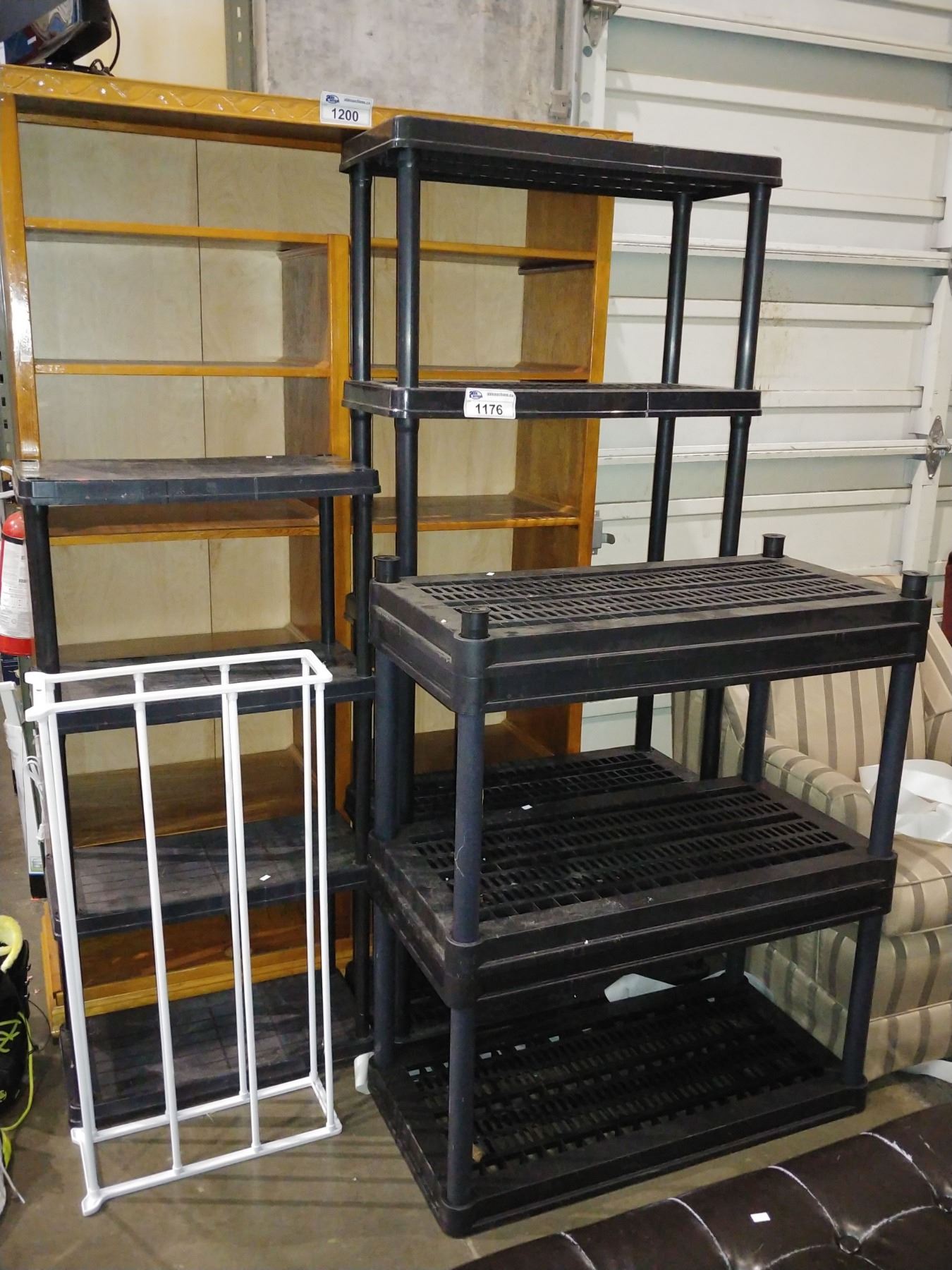 BLACK PLASTIC RACKING AND WHITE SHOE RACK
