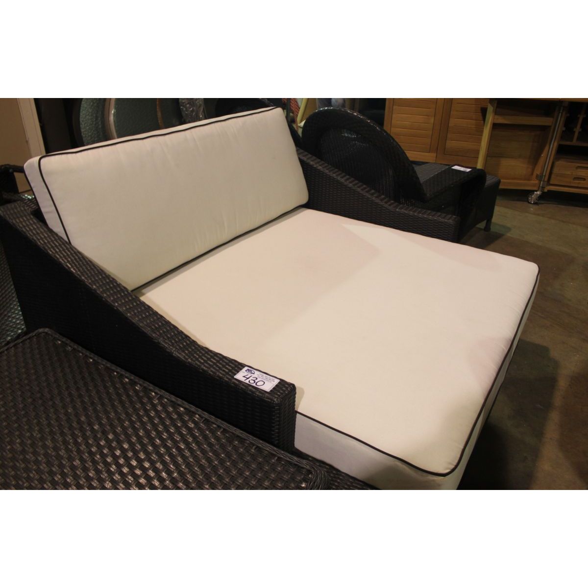 BLACK RATAN SQUARE BACK 2 SEAT LOUNGE CHAIR WITH CUSHION