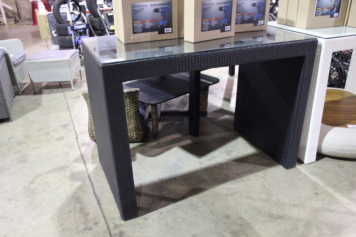 BLACK RATTAN GLASS TOP BAR HEIGHT PATIO TABLE